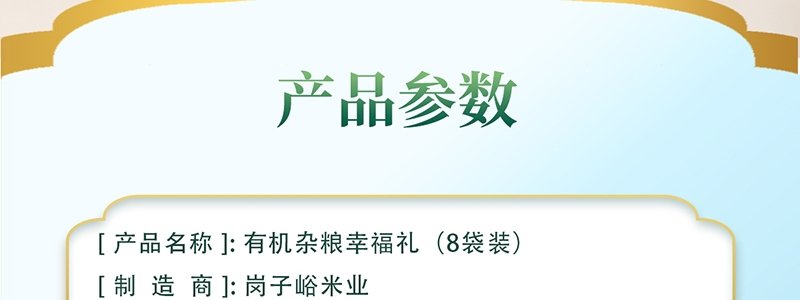 商品名称:岗子峪 幸福礼有机杂粮甄选大礼包(8袋)3240g/盒