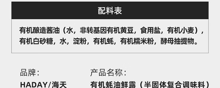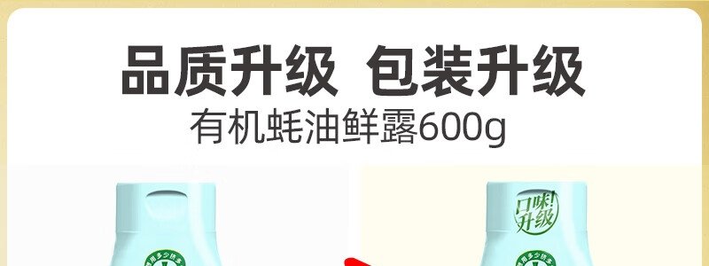 商品名称:海天 有机蚝油鲜露 600g/瓶