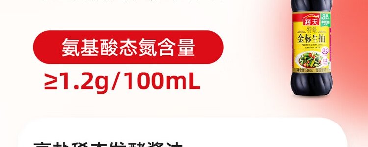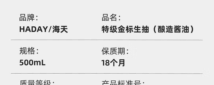 商品名称:海天 特级金标生抽 500mL+海天上等蚝油 260g 调味品组合装(中华老字号)