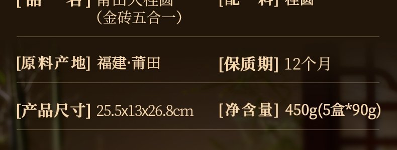 商品名称:天桂 金砖5合1 450G 礼盒装