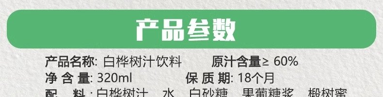 商品名称:林源春 白桦汁饮料礼盒 320ml*8瓶 泡沫托