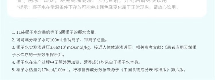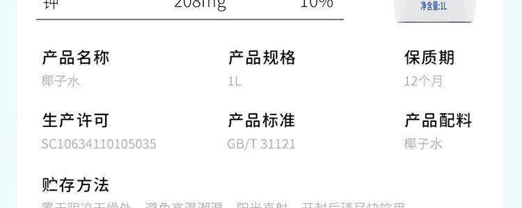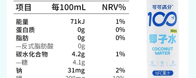 商品名称:可可满分 100%椰子水 1L*/瓶