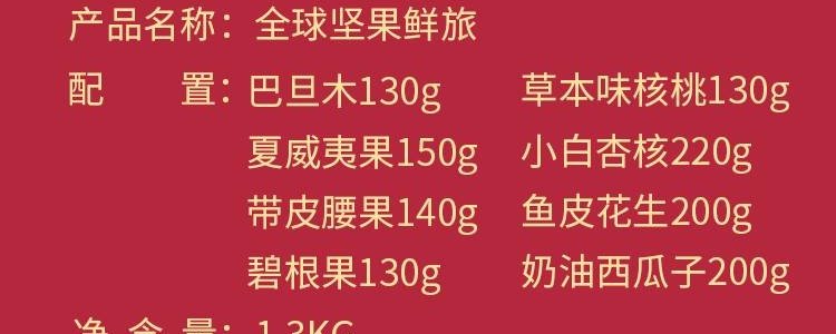 商品名称:鲜记 全球坚果鲜旅 1.3kg/盒