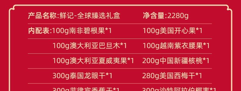 商品名称:鲜记 全球臻选礼盒 2.28kg/盒