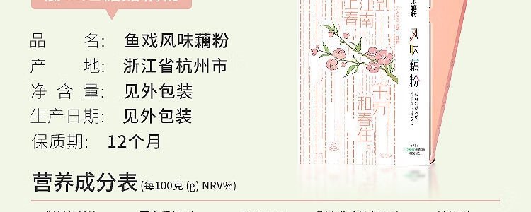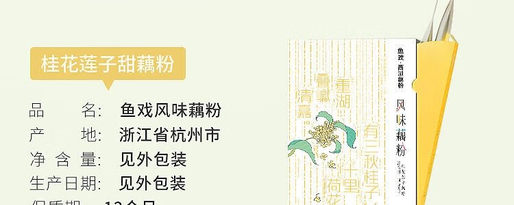 商品名称:鱼戏 1盒龙井甜藕粉+1盒桂花莲子藕粉+1盒低GI红糖藕粉