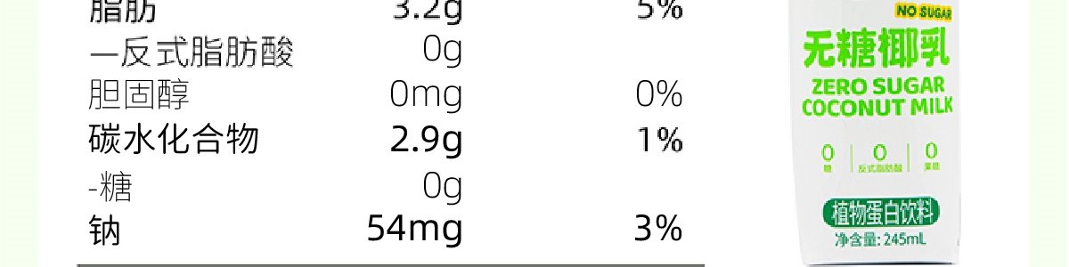 商品名称:可可满分 无糖椰乳 245ml*10瓶/箱