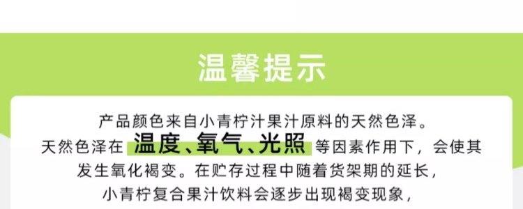 商品名称:乐源 小青柠复合果汁 280g*8瓶