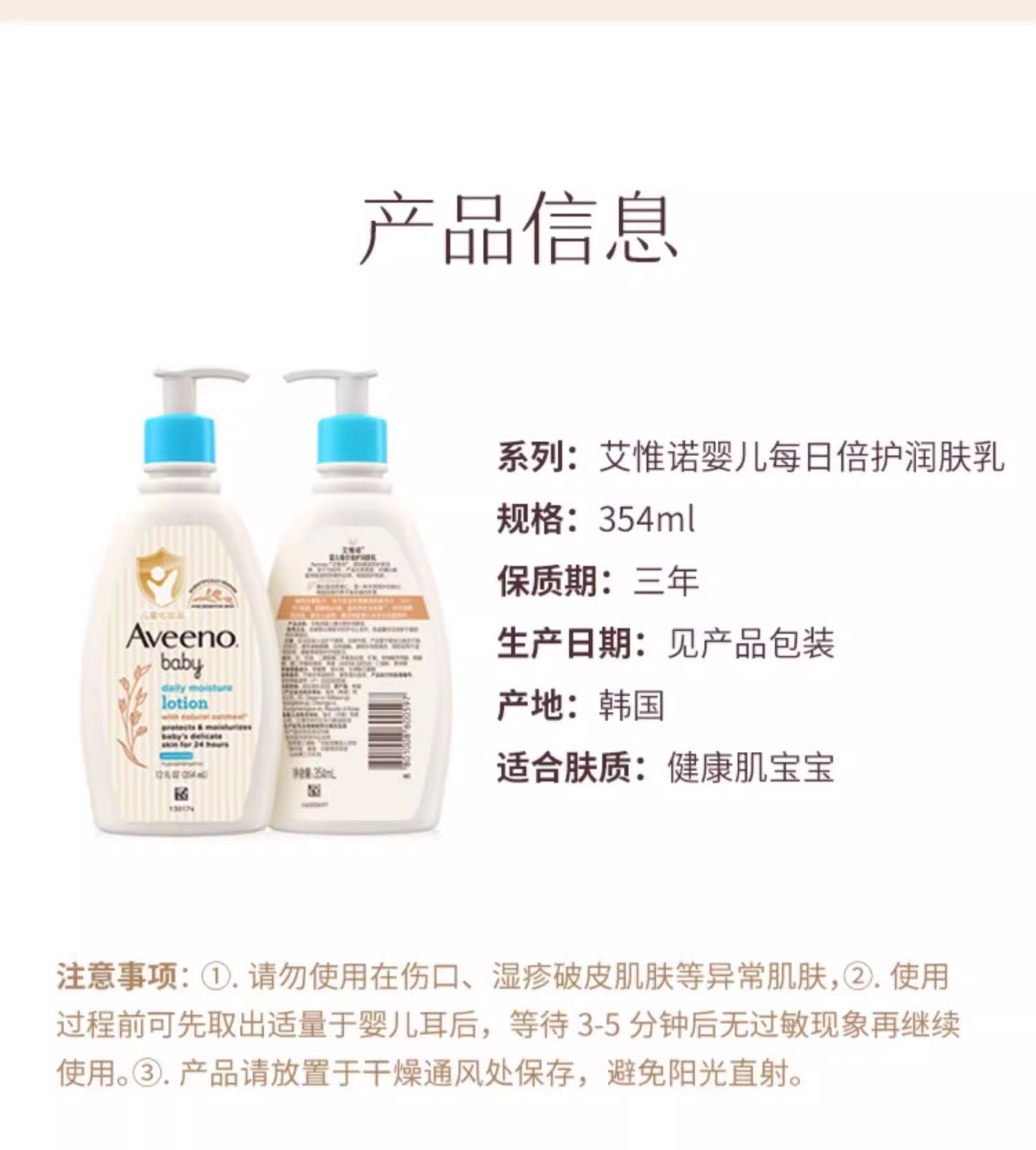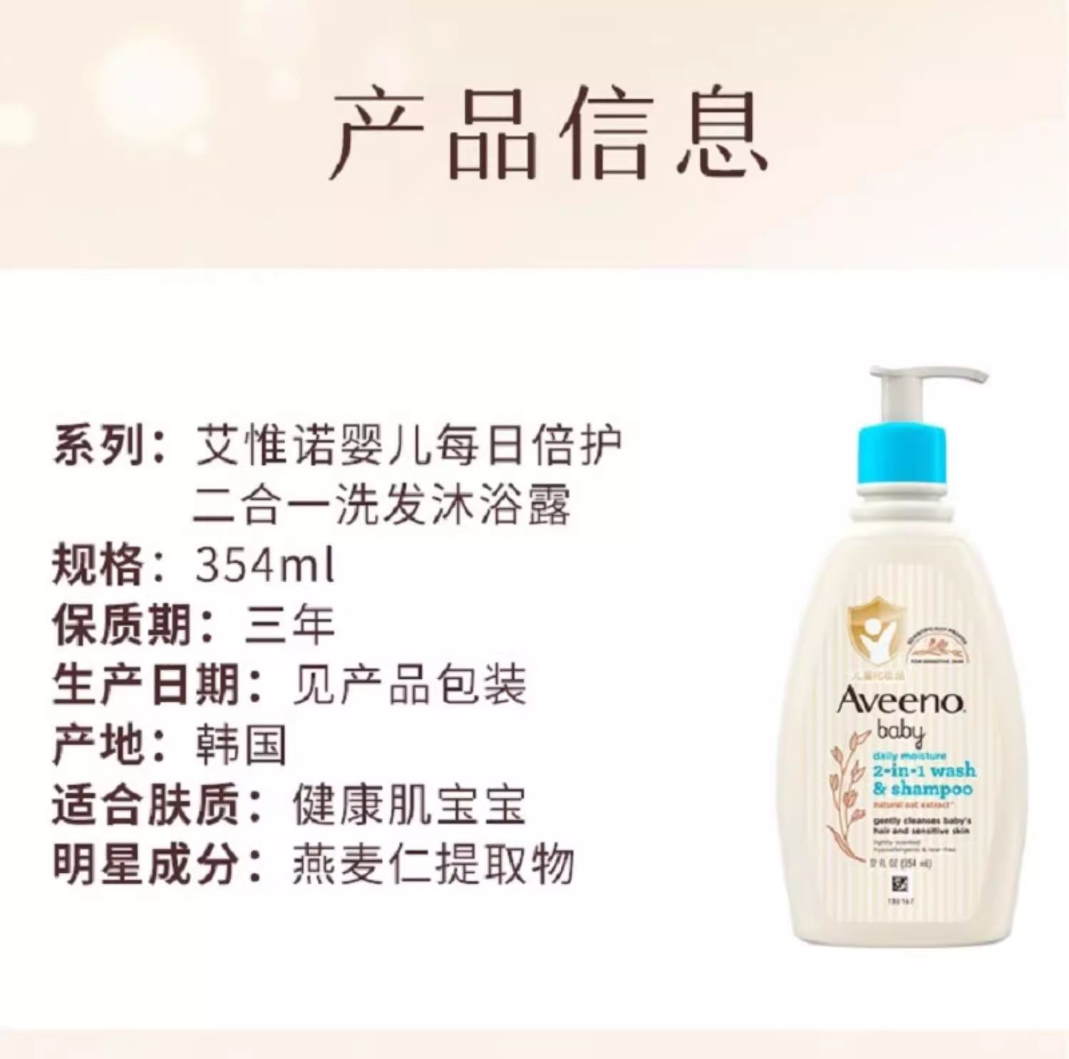 商品名称:艾维诺Aveeno 婴幼儿尊享礼盒装(洗护沐浴露354ml+每日倍护润肤乳354ml)