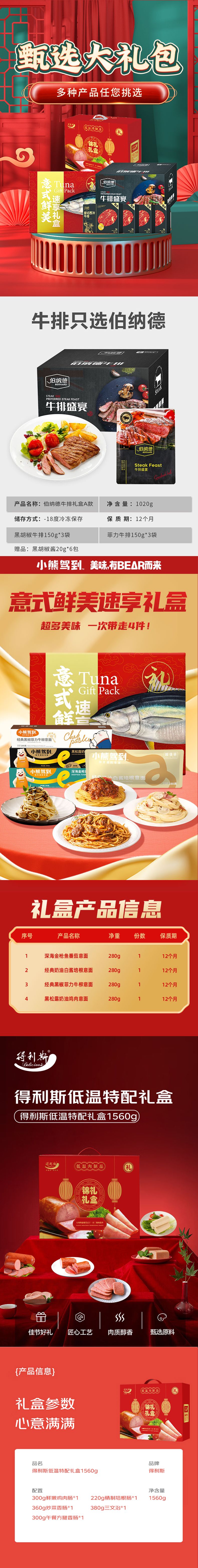 甄选年货大礼包 伯纳德精品牛排 得利斯低温火腿礼盒小熊驾到意面速享礼盒