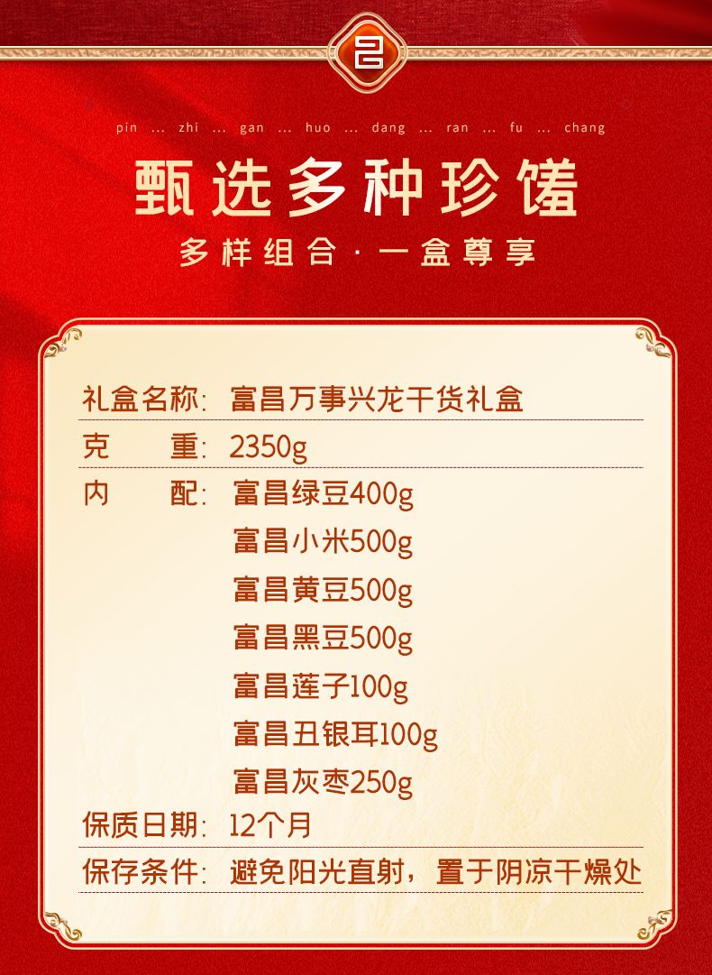 商品名称:富昌万事兴龙杂粮干货礼盒2350g