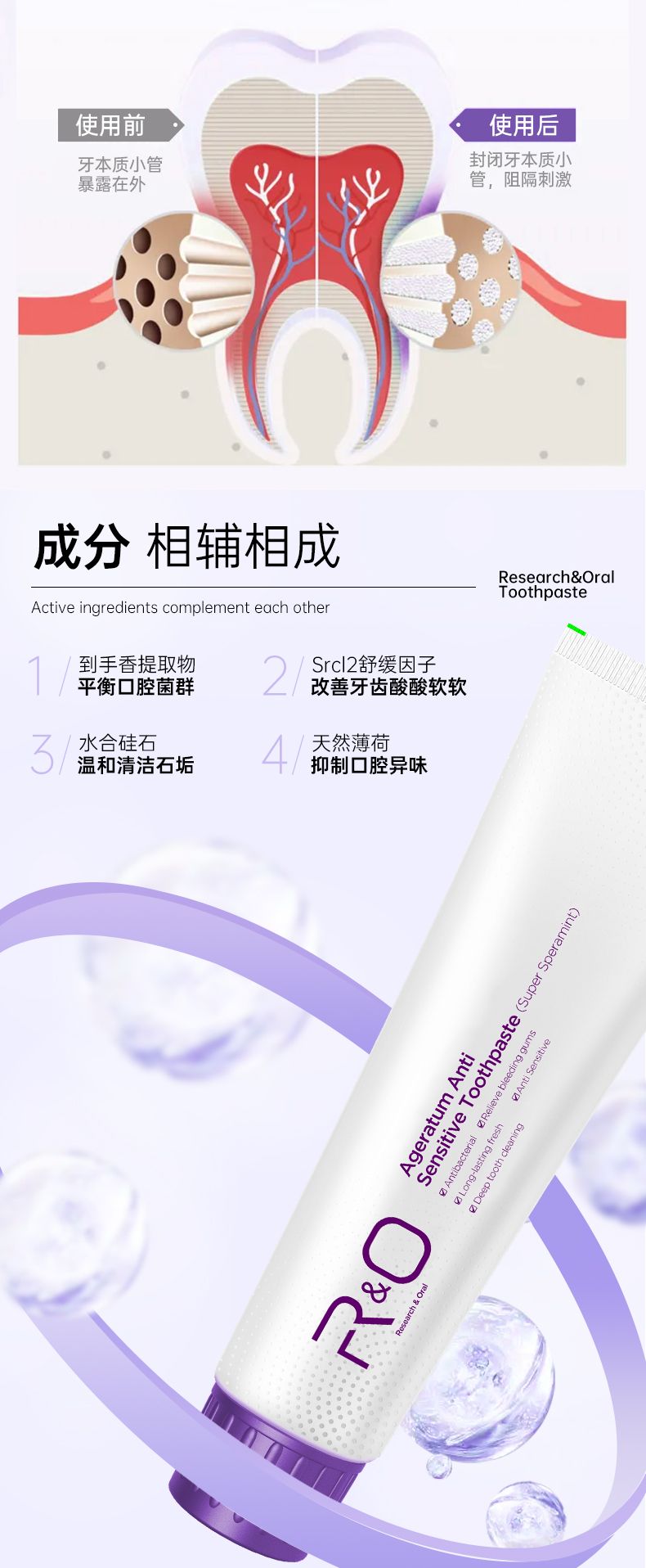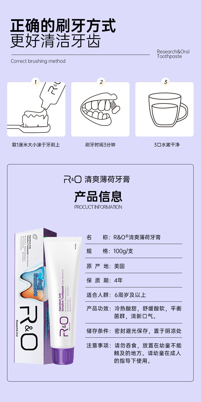 商品名称:R&O 清爽薄荷舒缓修敏牙膏 升级系列小紫管(100g)