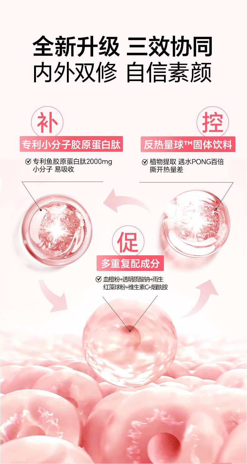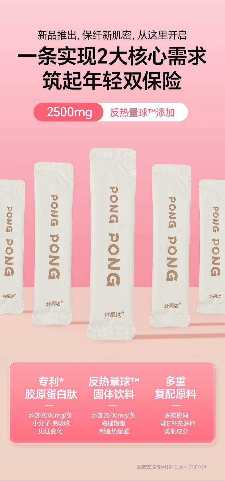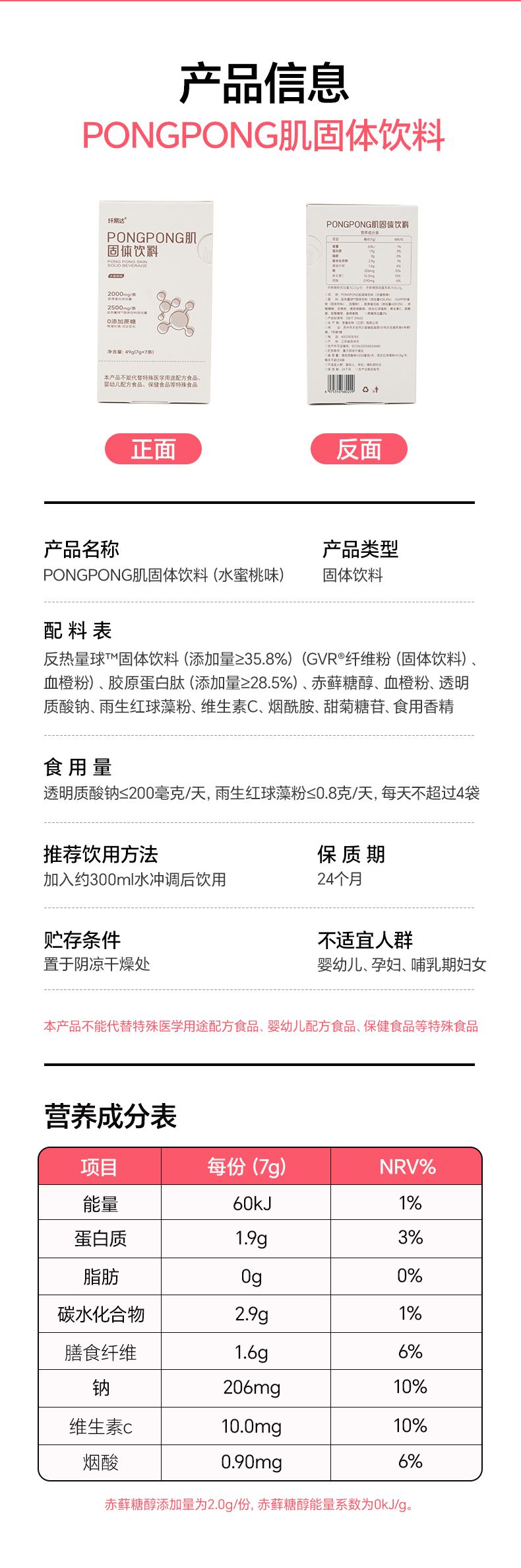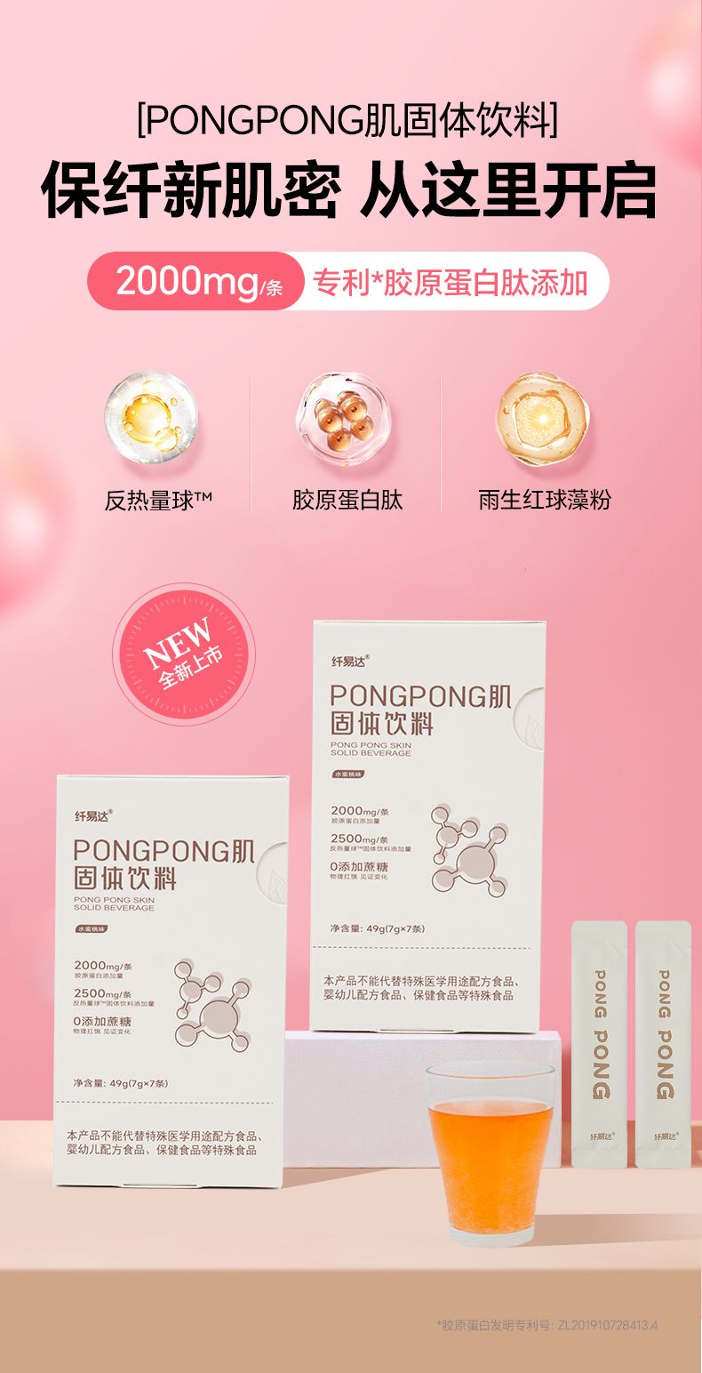 商品名称:至睿生物 纤易达 反热量球pongpong肌 胶原蛋白肽 固体饮料(水蜜桃味)7g*7条/盒