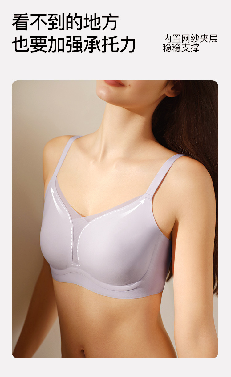 商品名称:【大胸显小】凉感透气背勾文胸聚拢轻薄胸罩抗菌无钢圈V领内衣女 995456