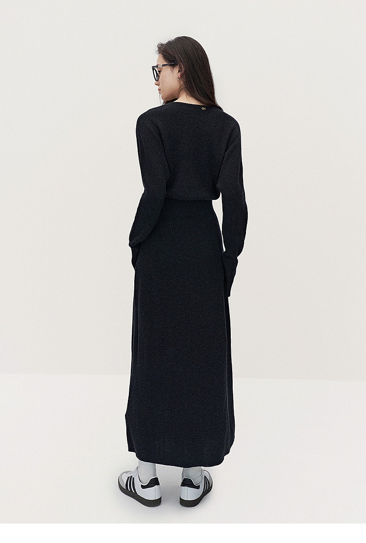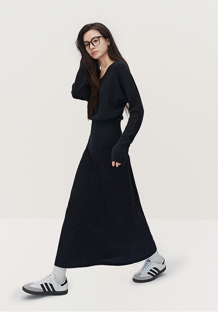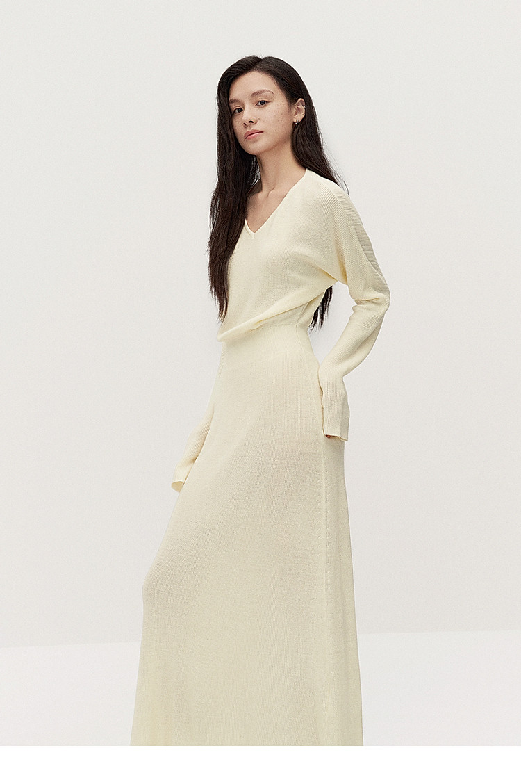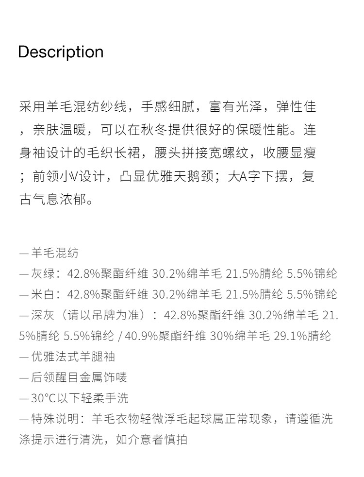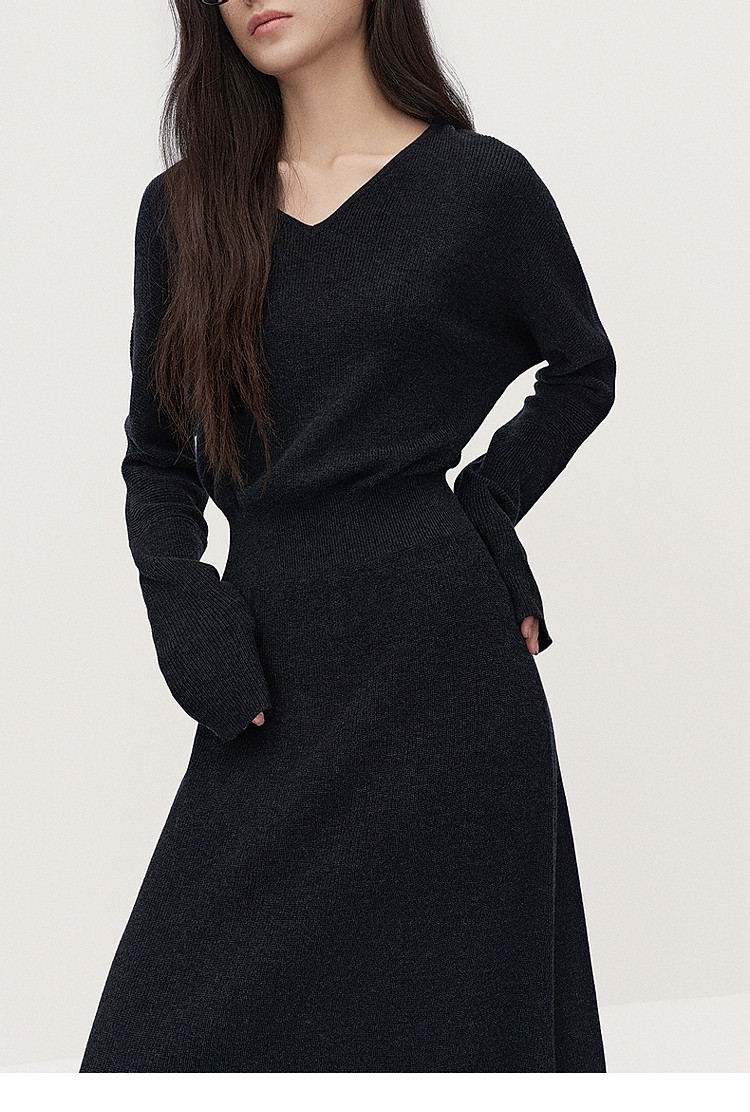商品名称:春装 V领软糯保暖显瘦羊毛长款毛织连衣裙 312015