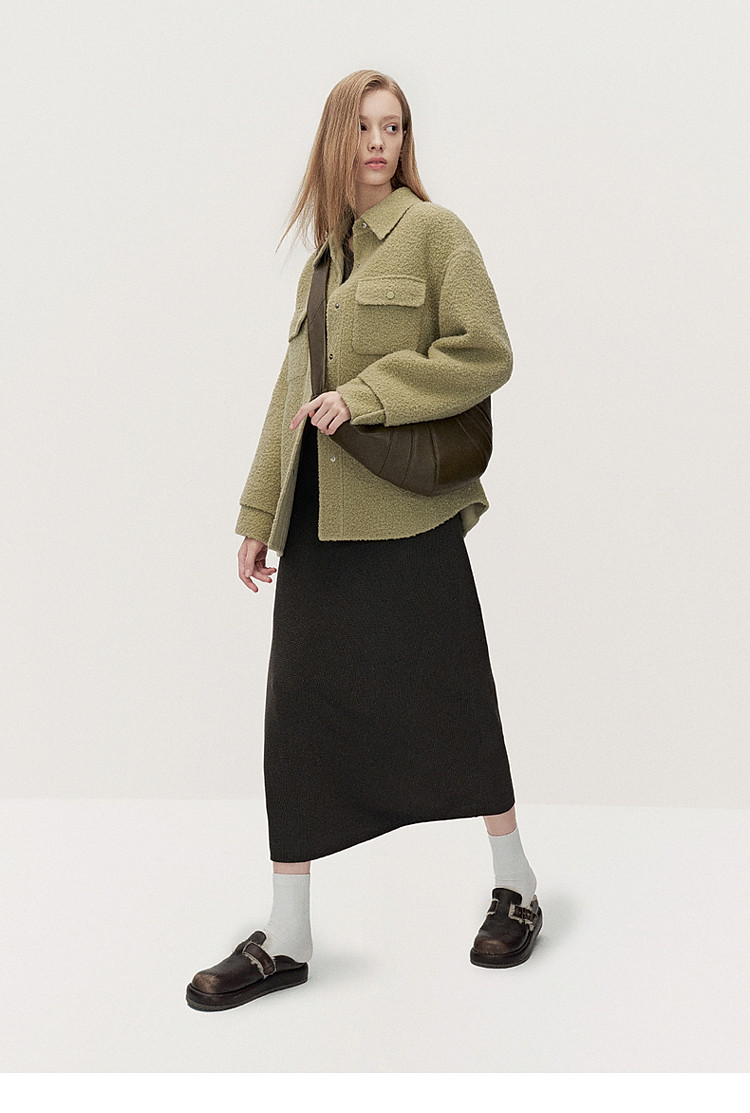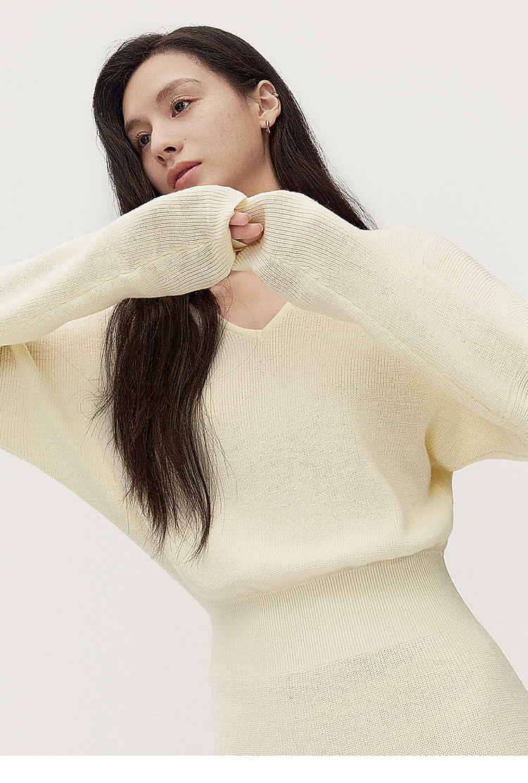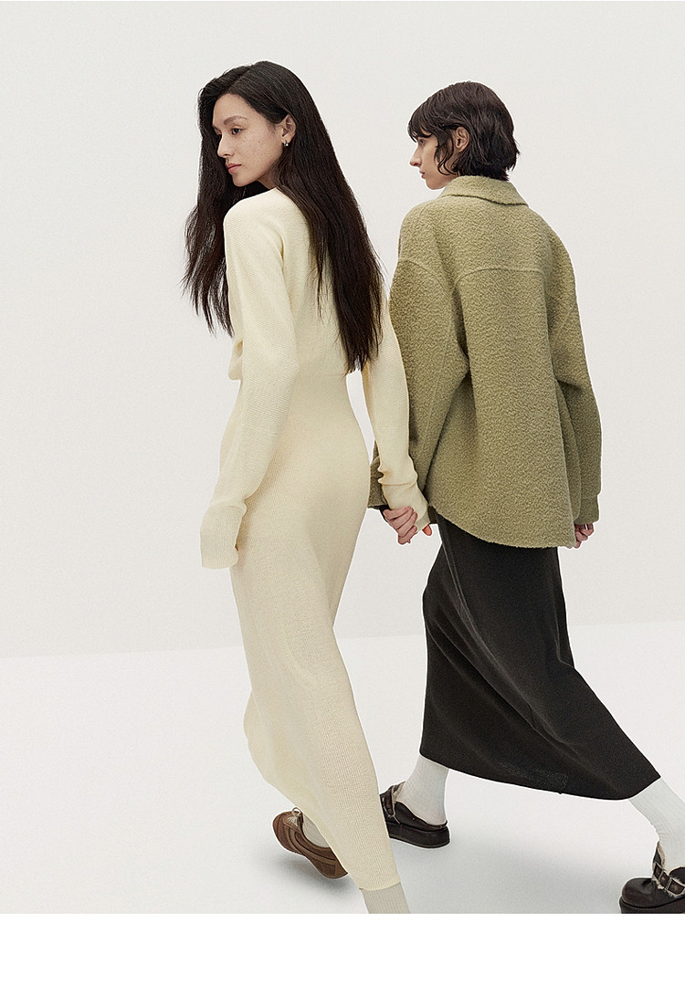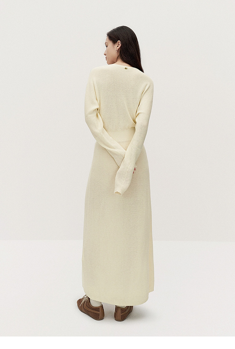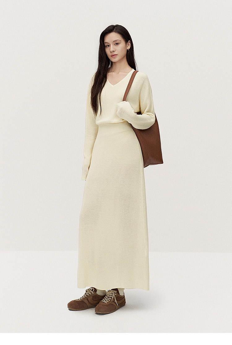 商品名称:春装 V领软糯保暖显瘦羊毛长款毛织连衣裙 312015