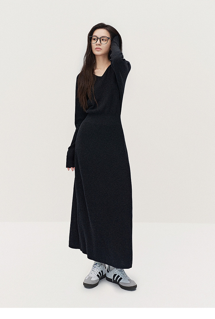 春装 V领软糯保暖显瘦羊毛长款毛织连衣裙 312015
