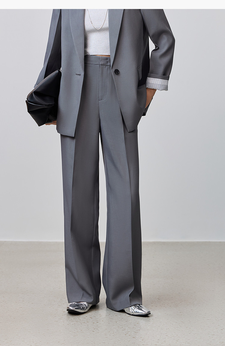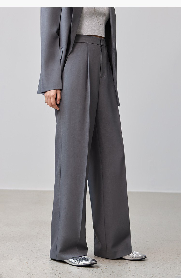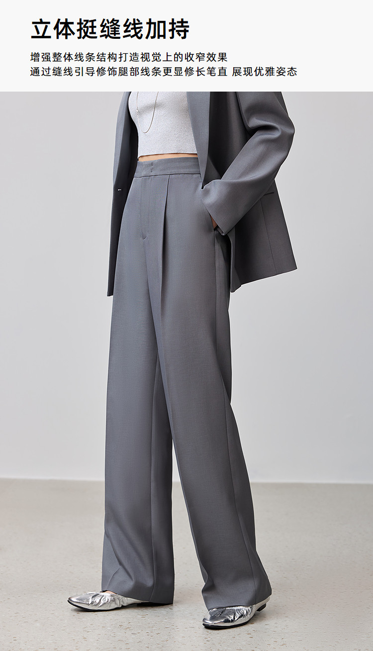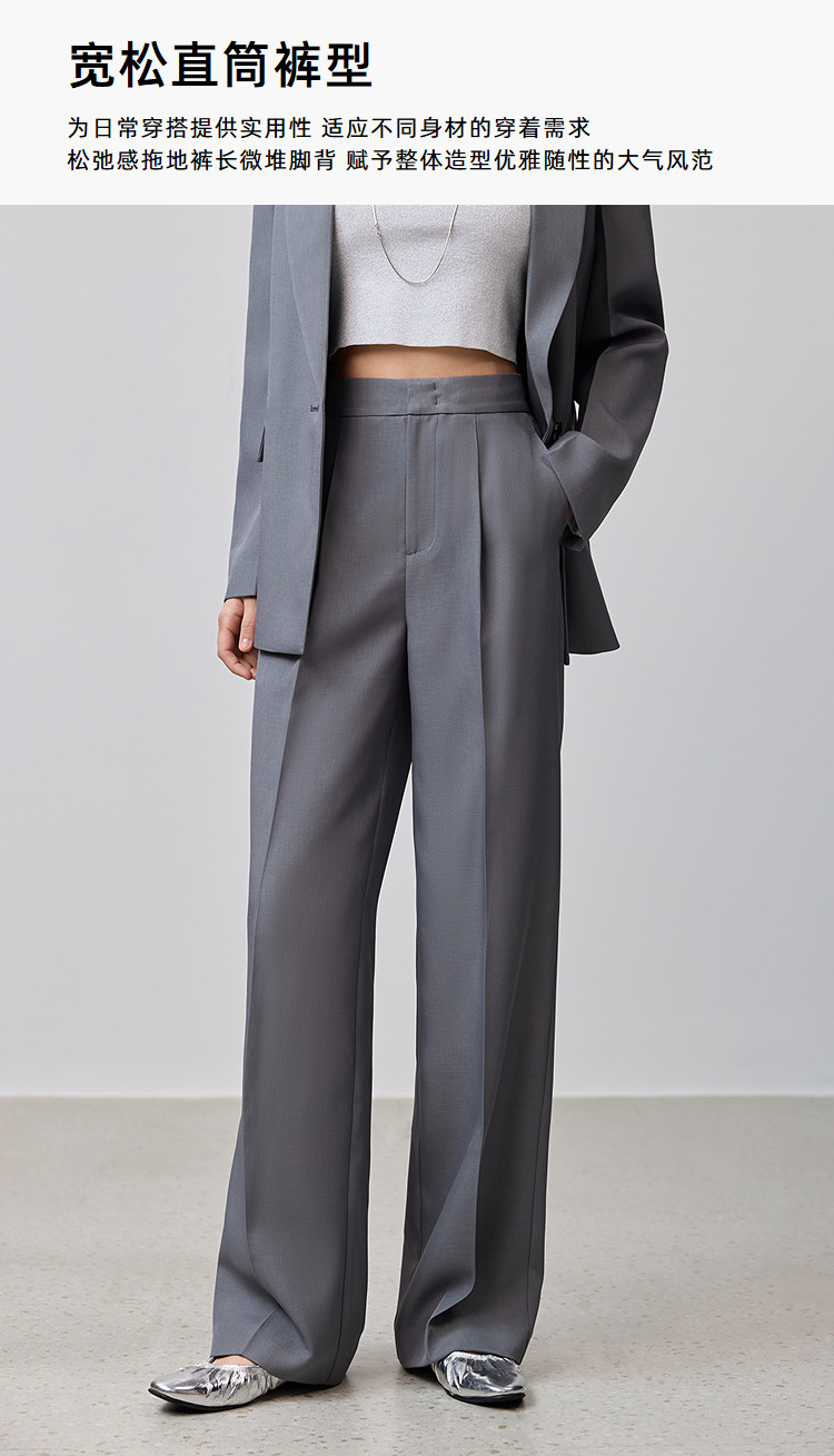 【零压直筒裤】经典重塑2025春季通勤仿麻肌理感宽松休闲西装裤女 570395