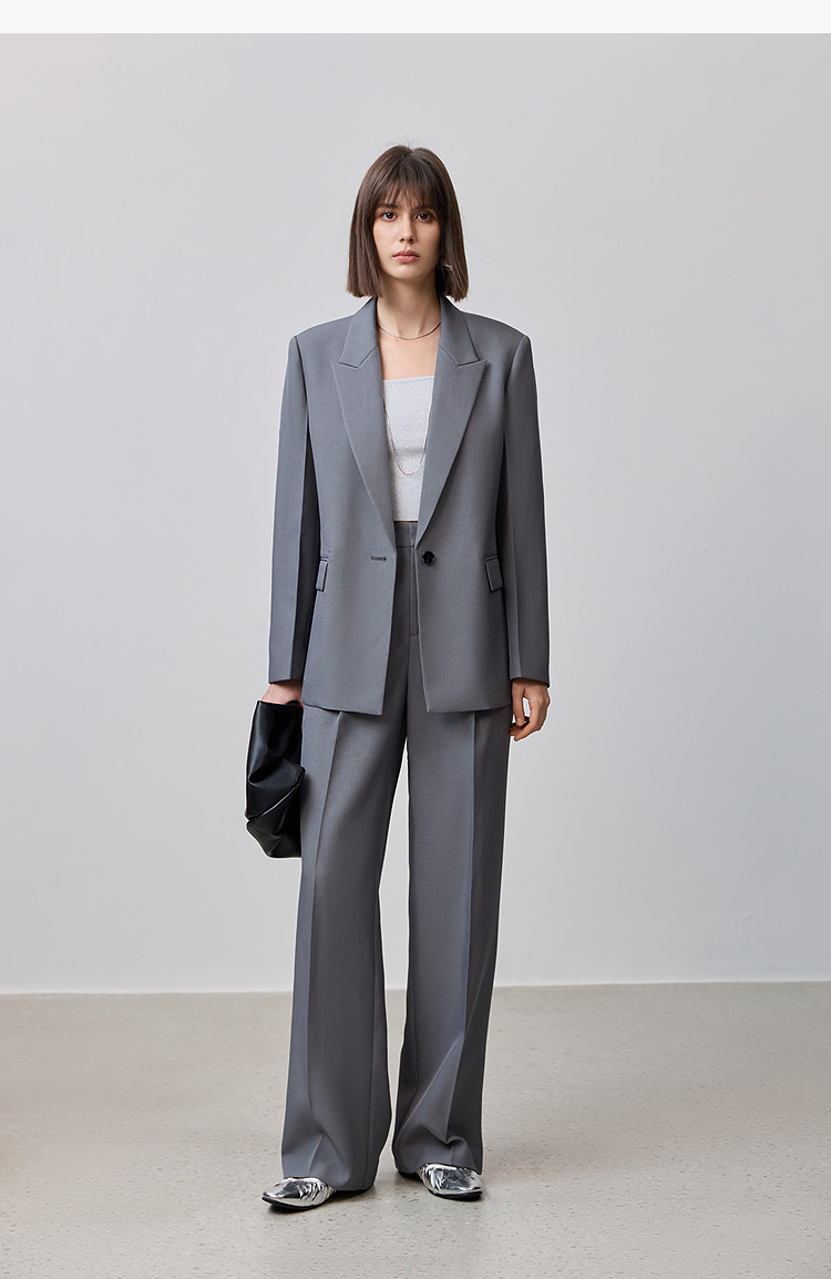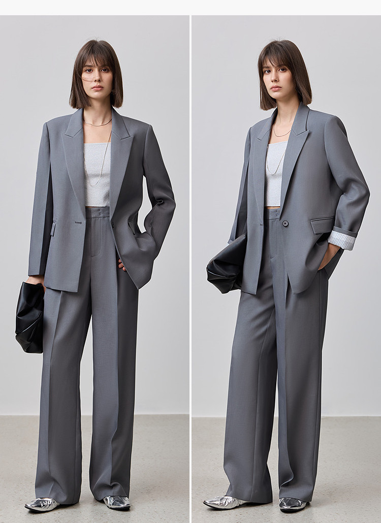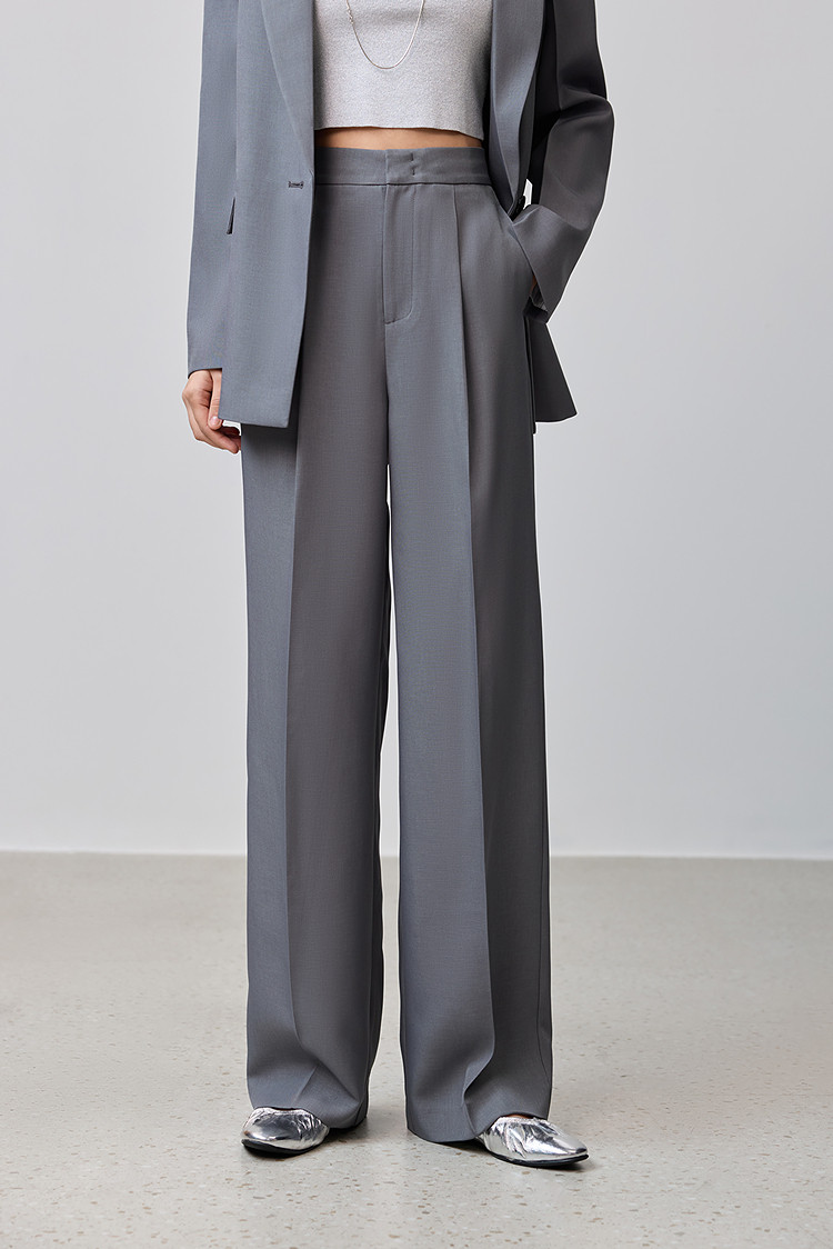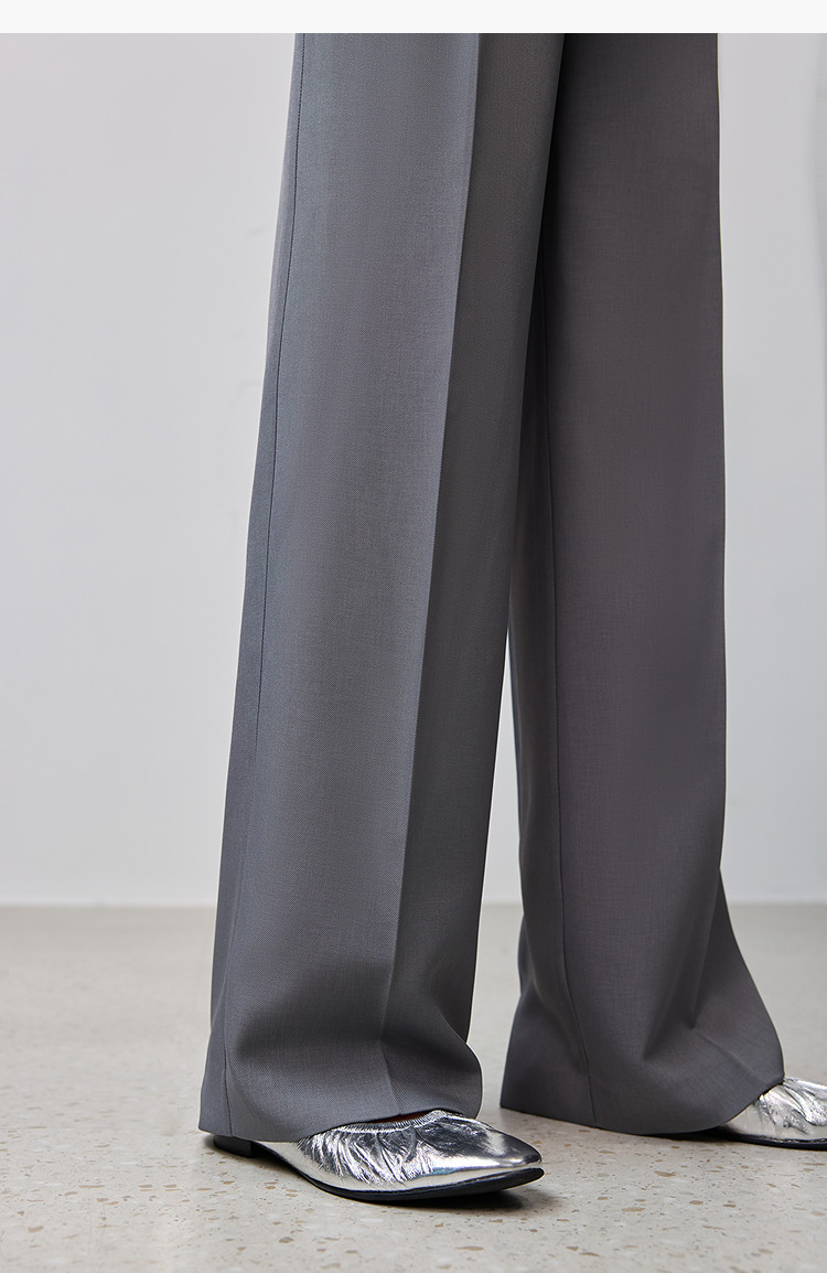【零压直筒裤】经典重塑2025春季通勤仿麻肌理感宽松休闲西装裤女 570395