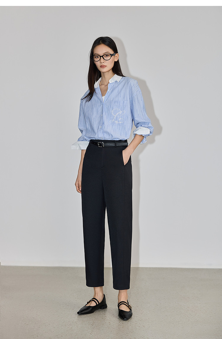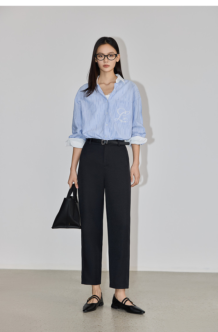 【2025春季】经典极简风肌理感百搭通勤直筒裤九分裤女裤子 267483