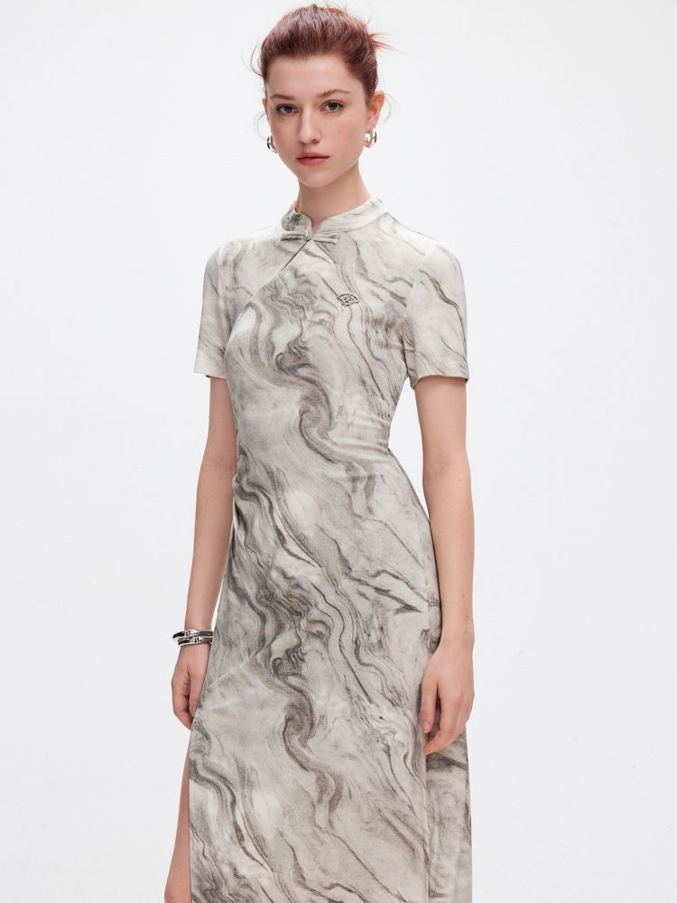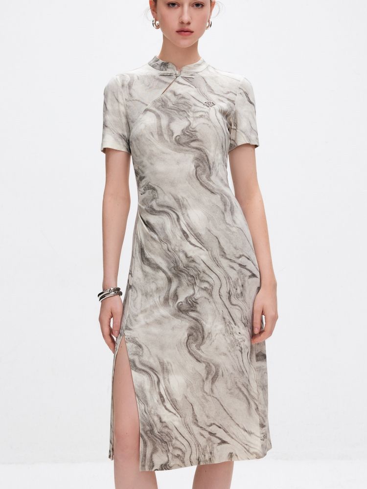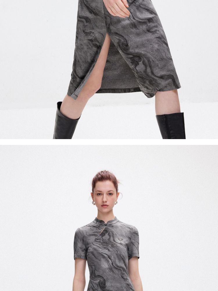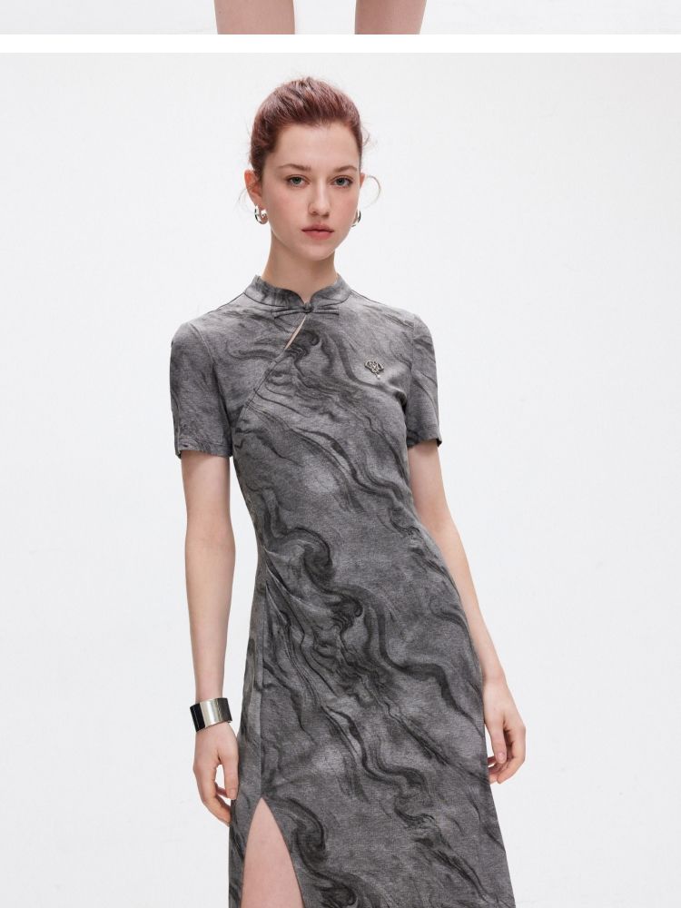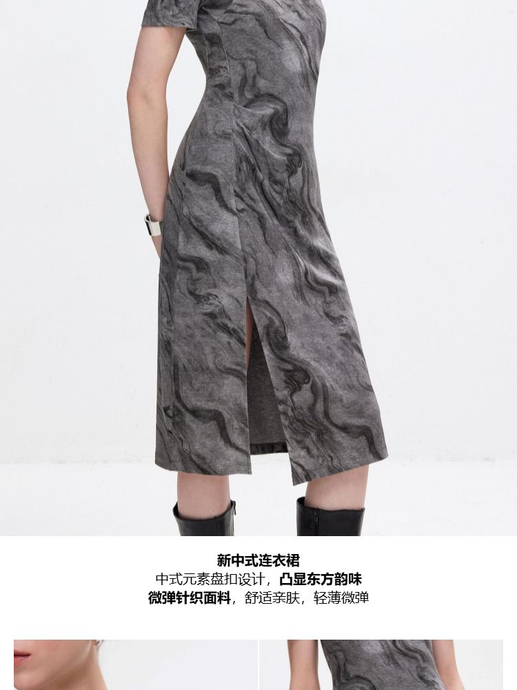 商品名称:【国风新中式】2025春季新款盘扣收腰针织短袖连衣裙女 793754