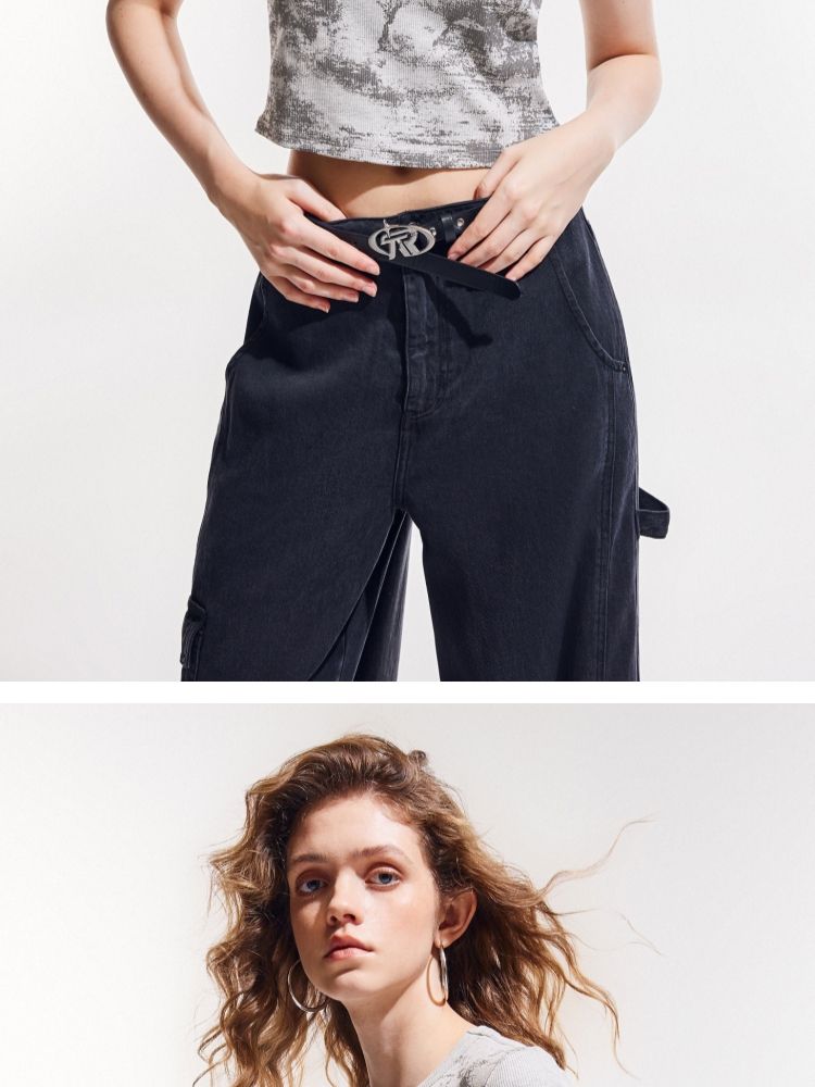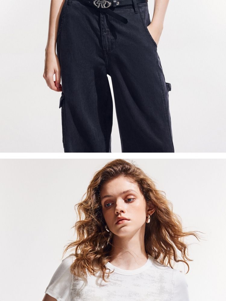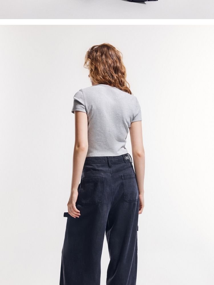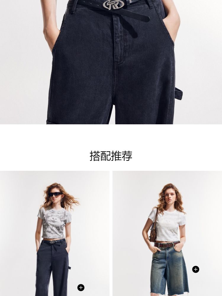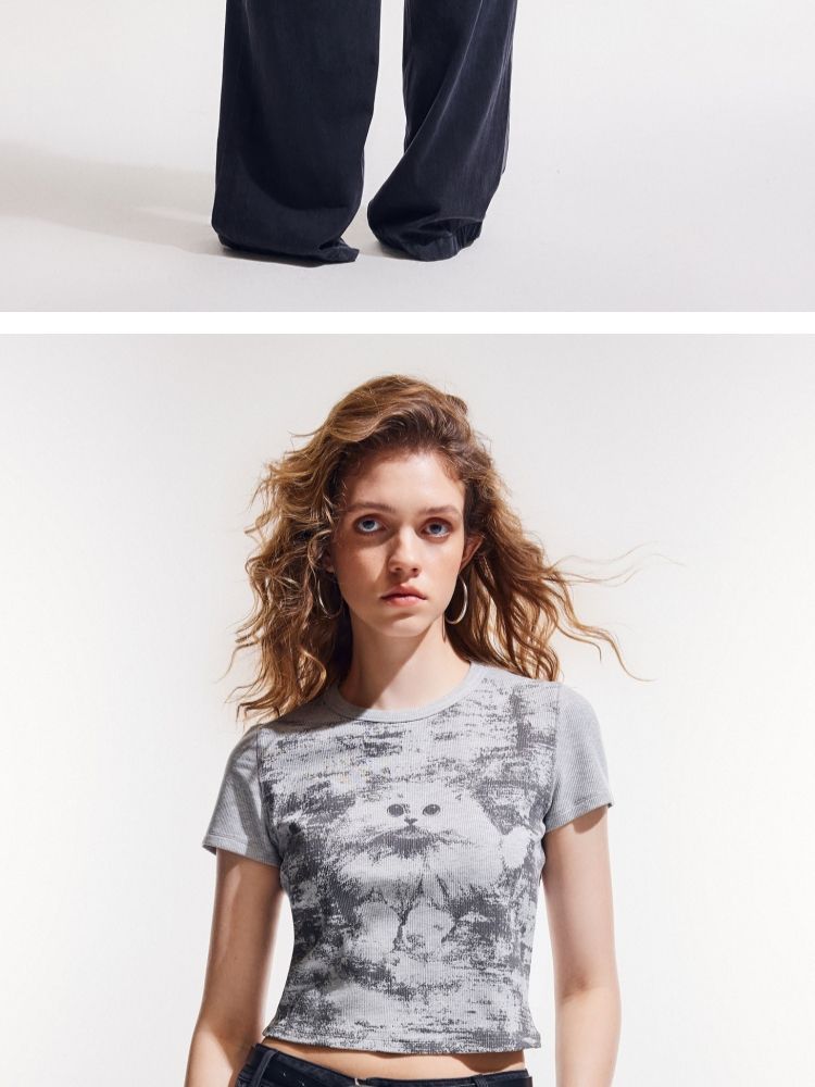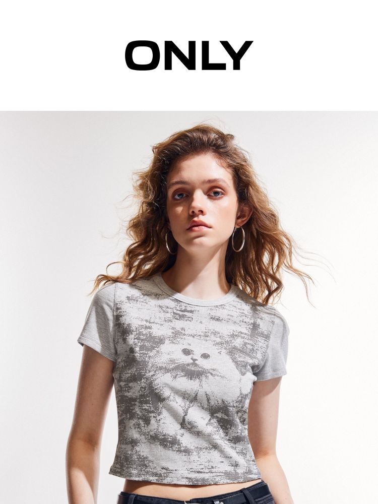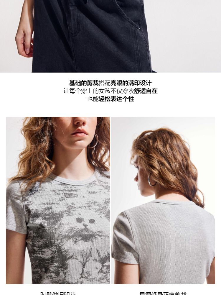 商品名称:【做旧满印】2025夏新款时尚个性辣妹修身正肩短袖T恤女 568346