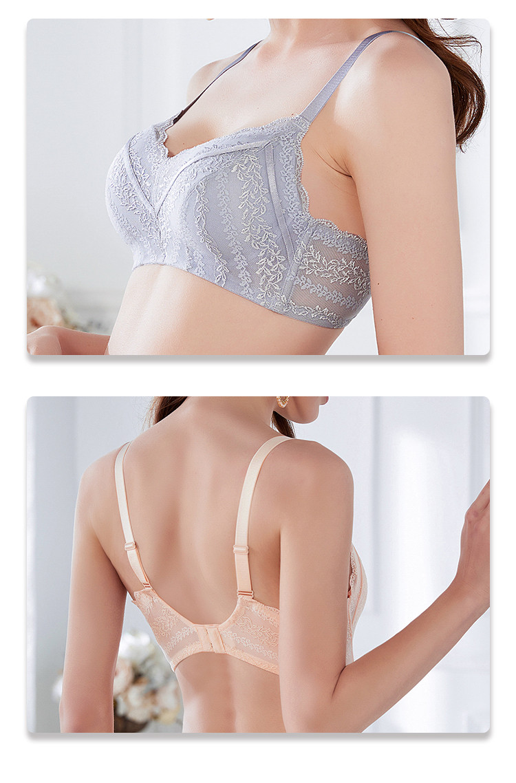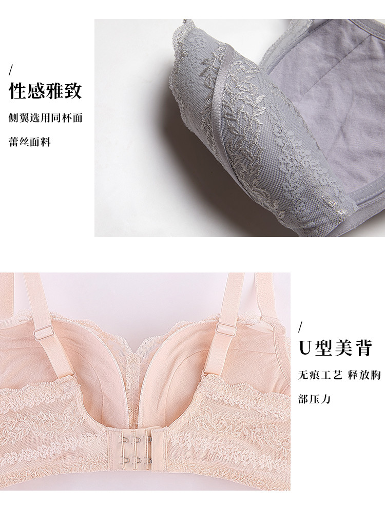 商品名称:【纯棉里杯】舒适透气蕾丝美背内衣无钢圈上托侧收副乳文胸罩内衣 429771