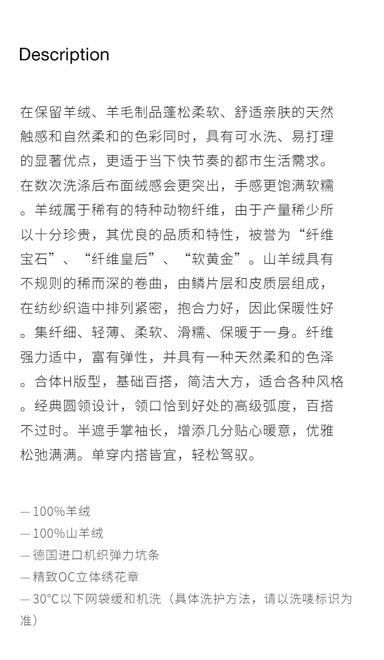 限定系列OCH.春装可机洗100%羊绒针织上衣打底内搭毛衣女 884815