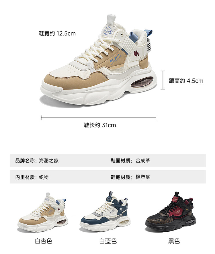 商品名称:男士休闲运动鞋网面透气男鞋厚底增高中帮男款百搭运动鞋 985423
