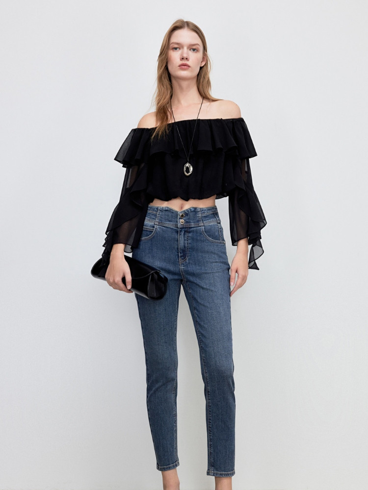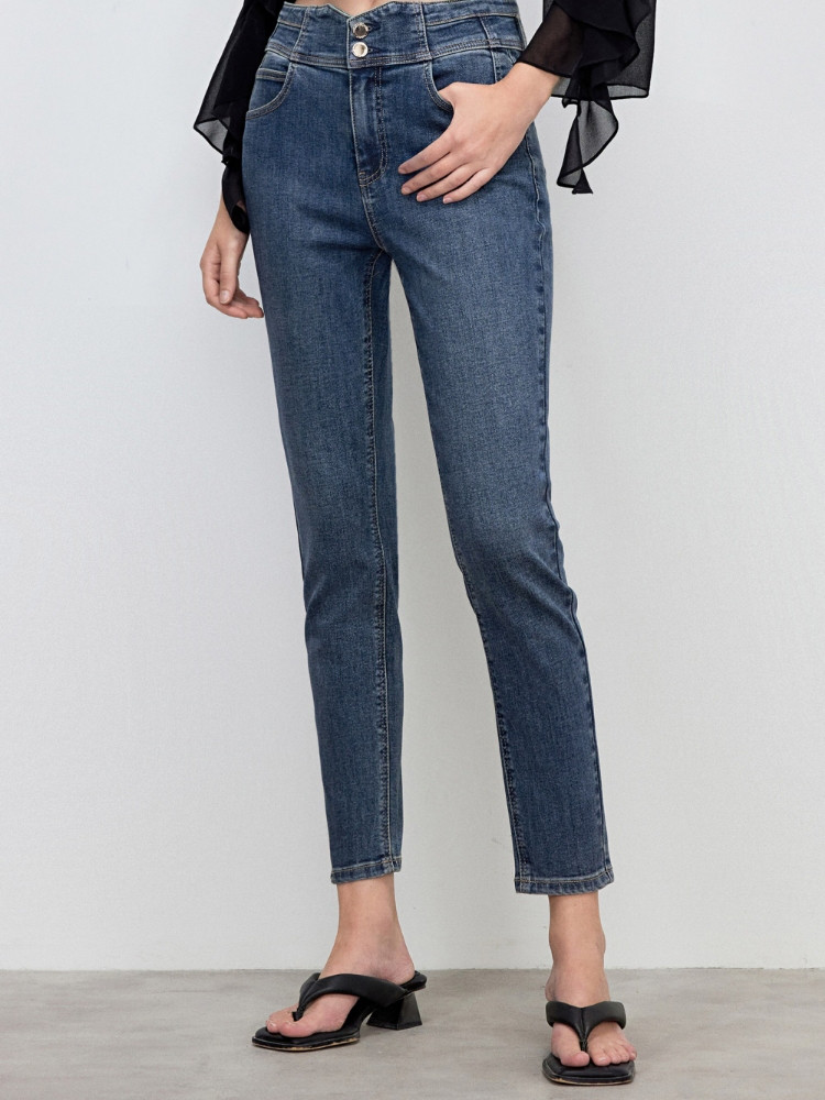 【小个子九分裤】2025夏季简约九分紧身铅笔裤牛仔裤女 866906