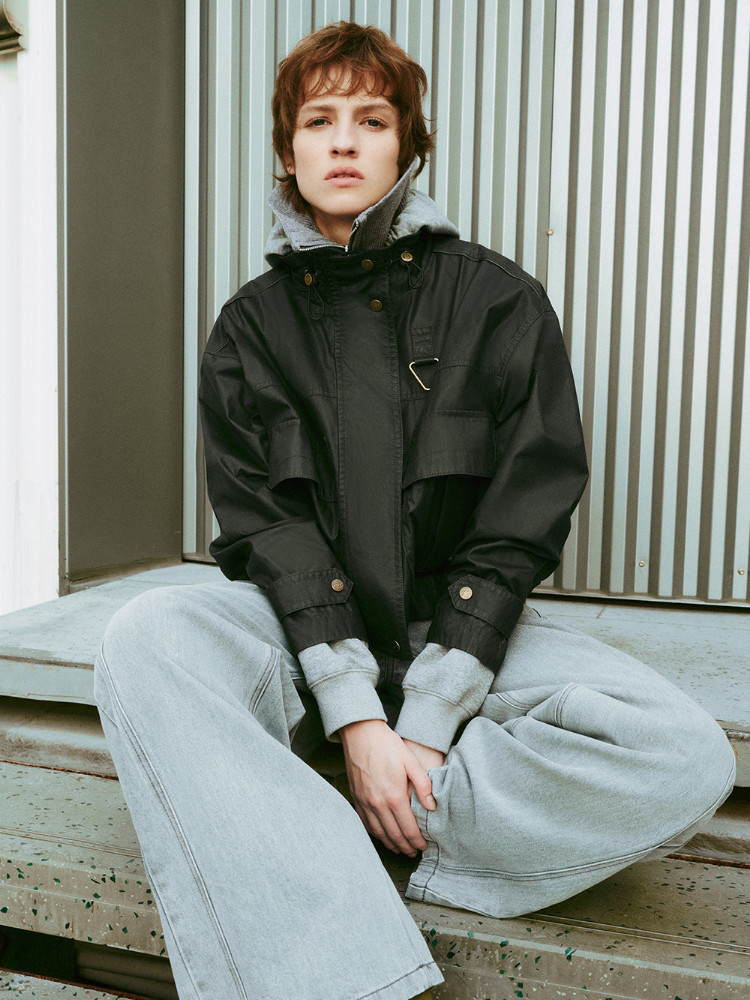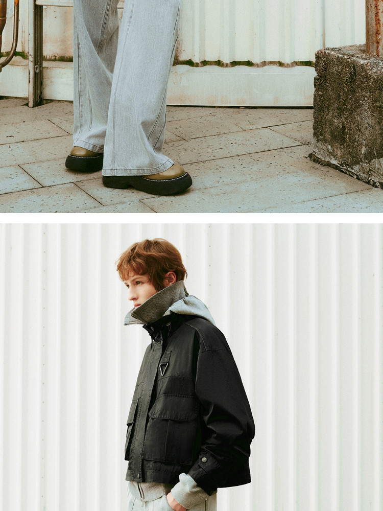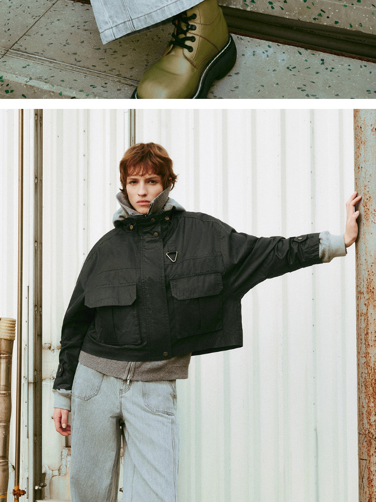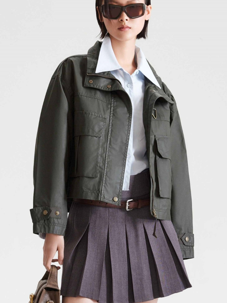 【挺括立体领口】2025春季新款时髦宽松落肩立领短款外套女 255706