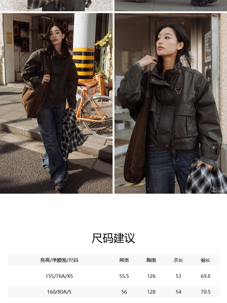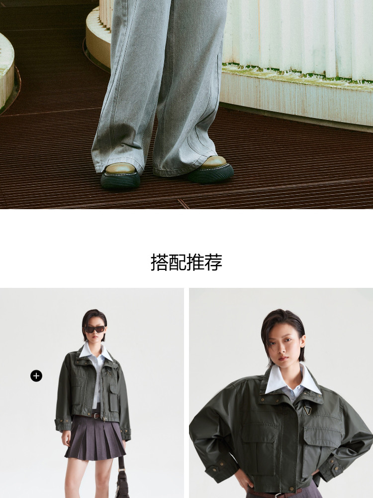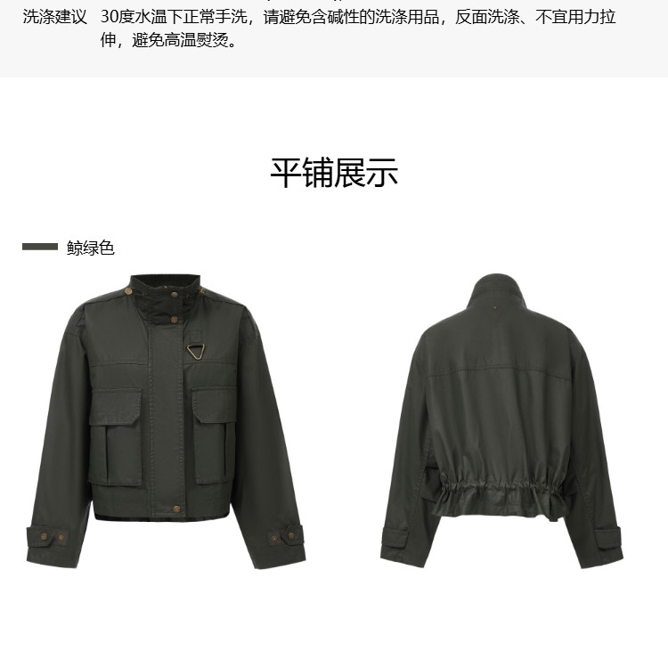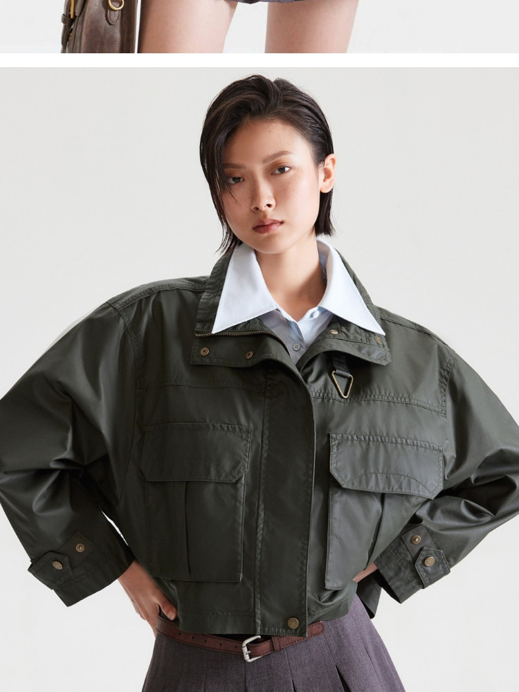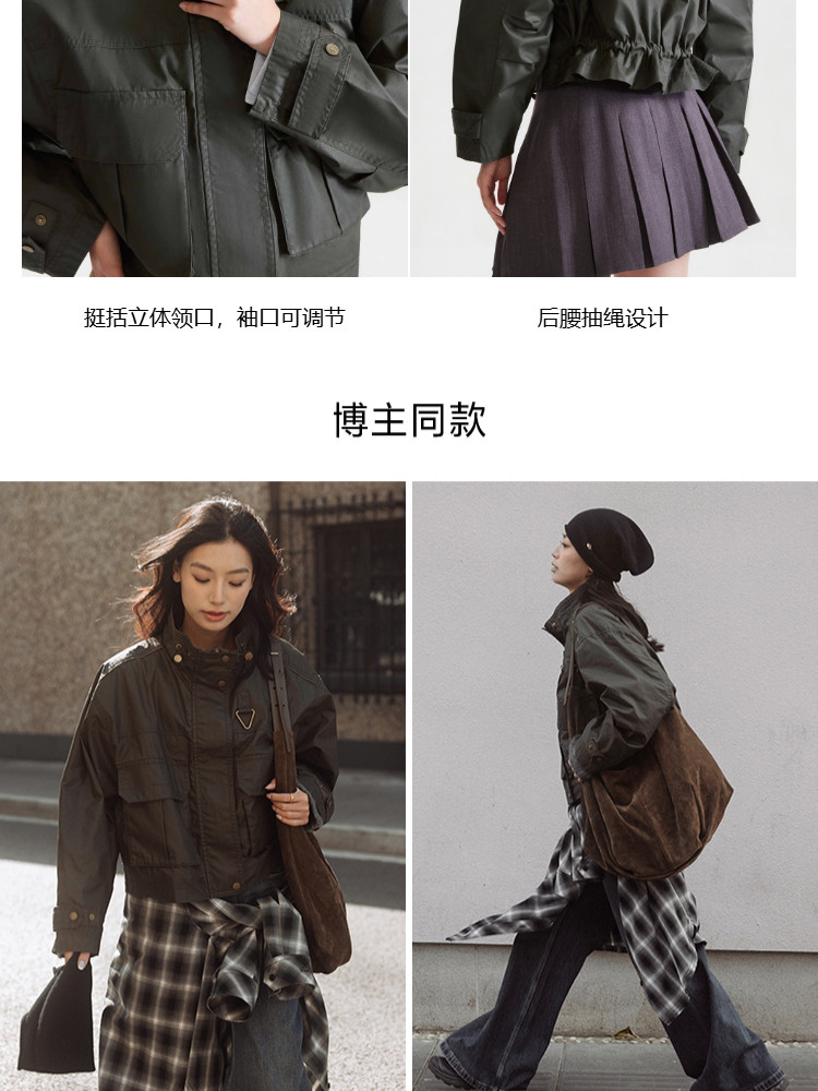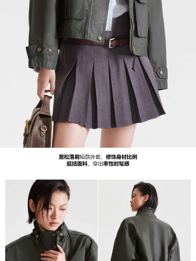 商品名称:【挺括立体领口】2025春季新款时髦宽松落肩立领短款外套女 255706