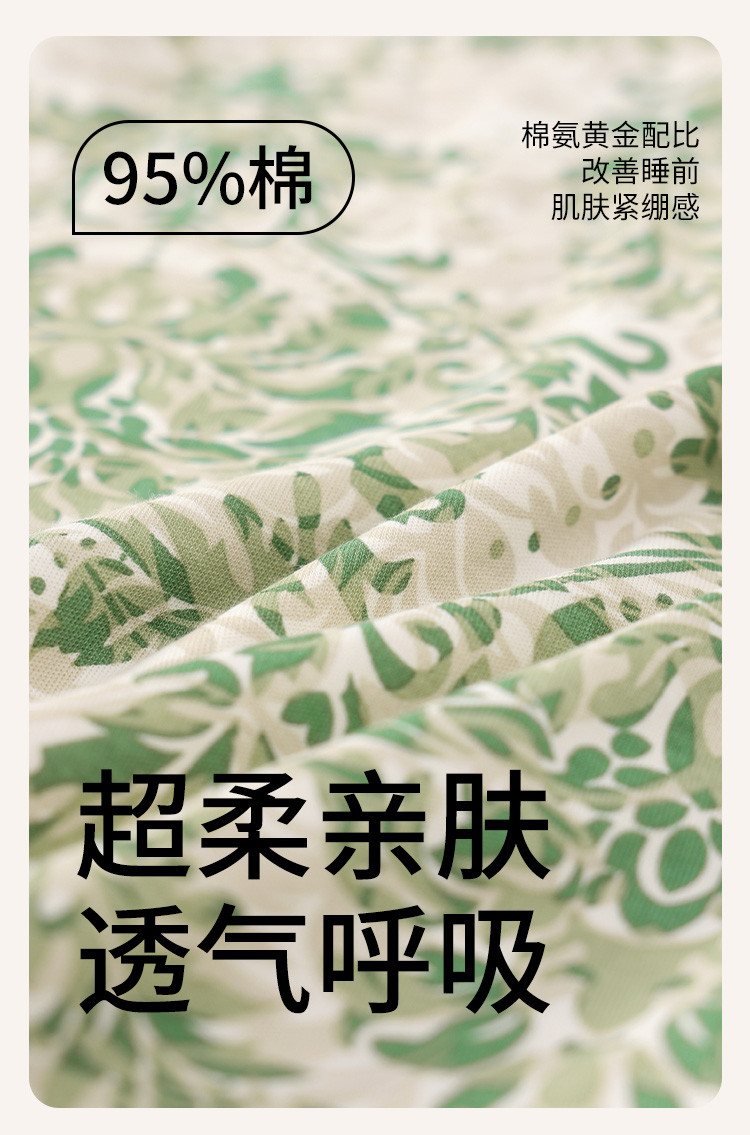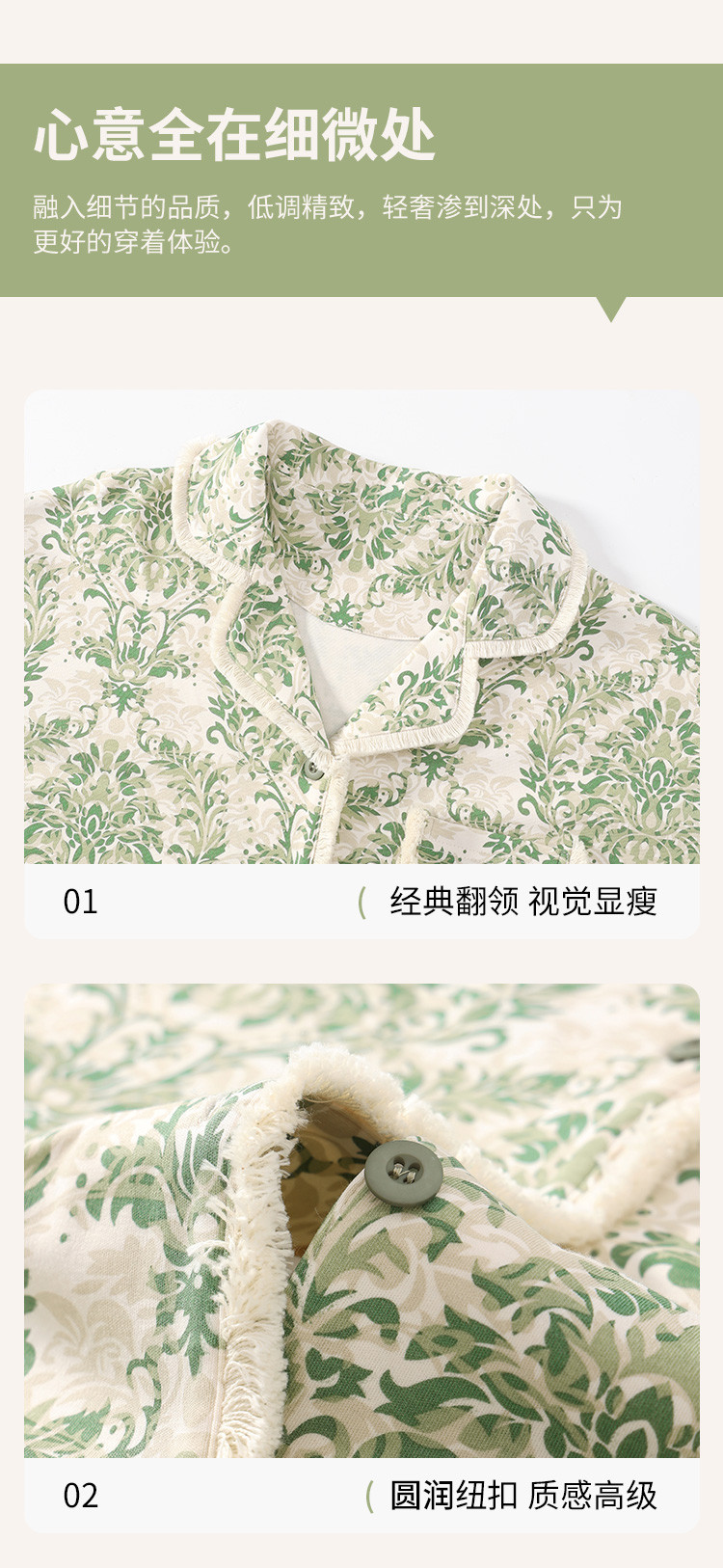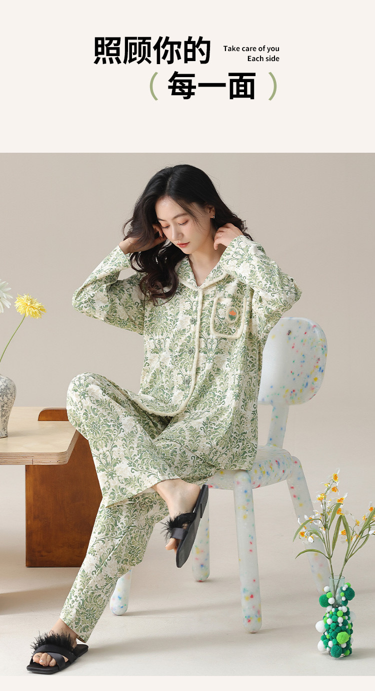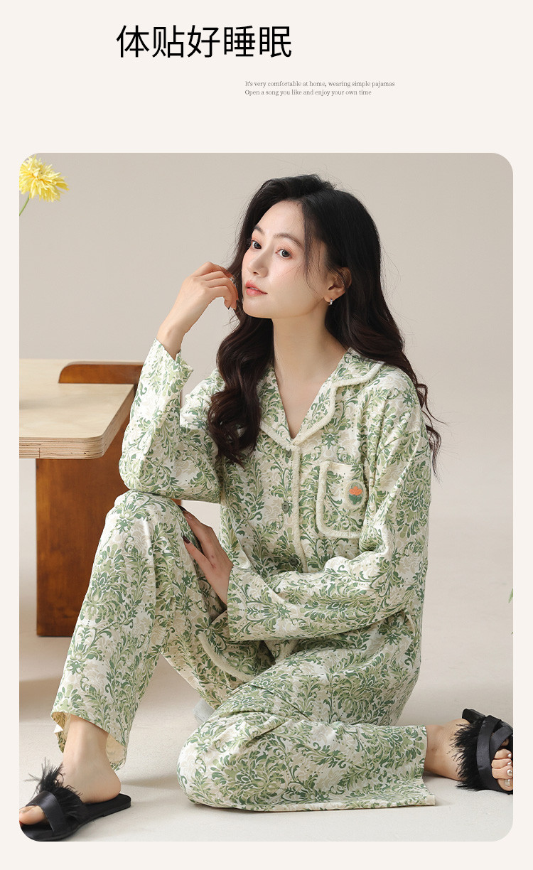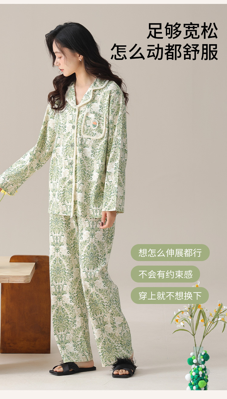 【植物花卉】春款长袖睡衣女士95%柔棉开衫家居服套装可外穿 133195