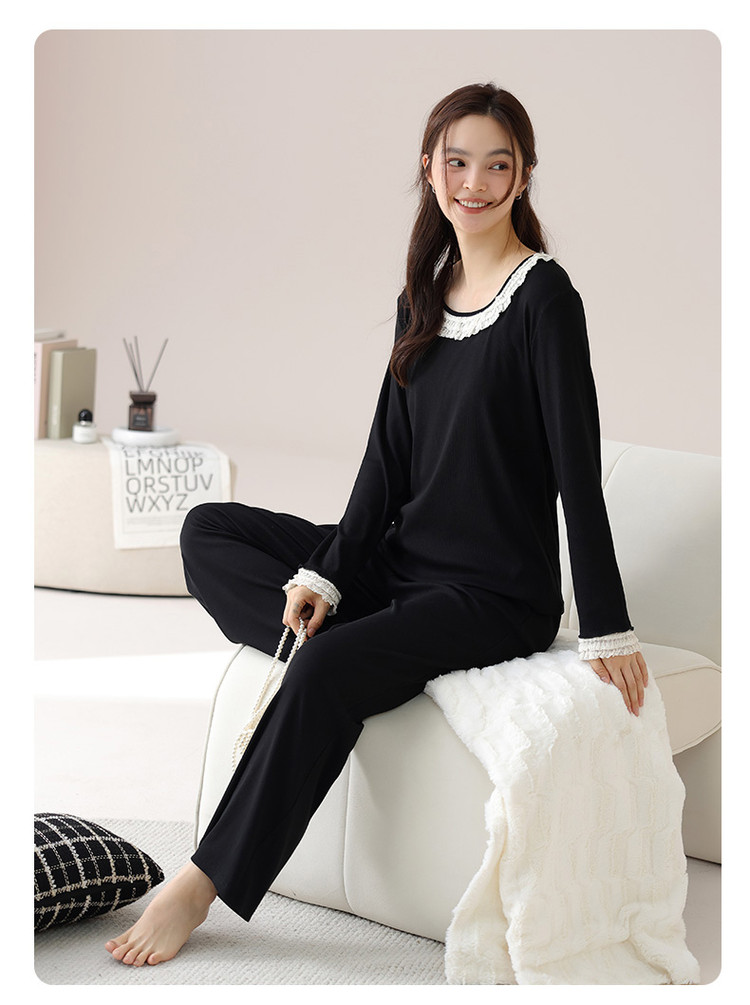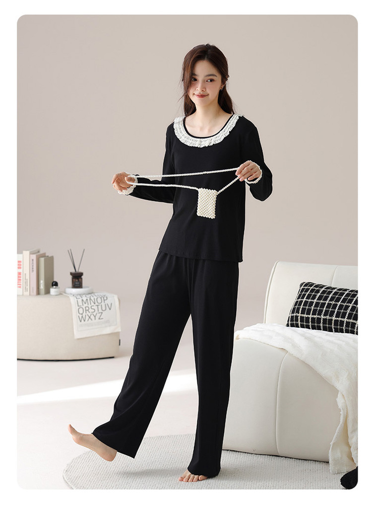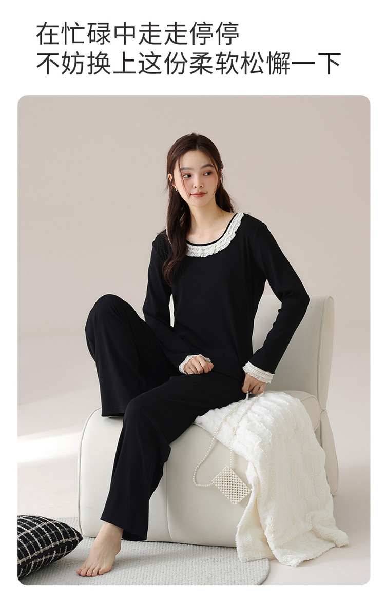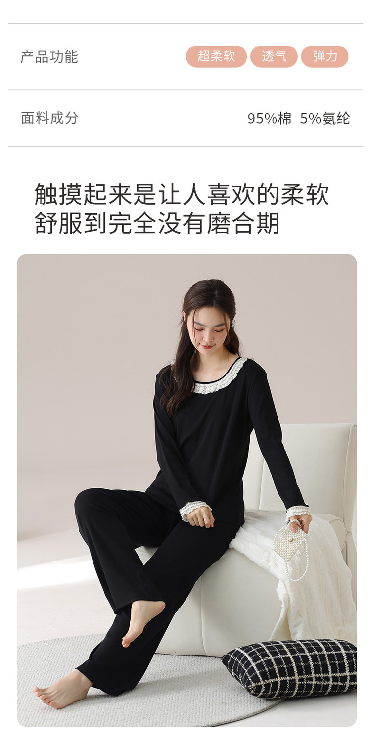 商品名称:【新疆棉】优雅蕾丝圆领套头休闲优质棉舒适家居服秋衣秋裤 421771