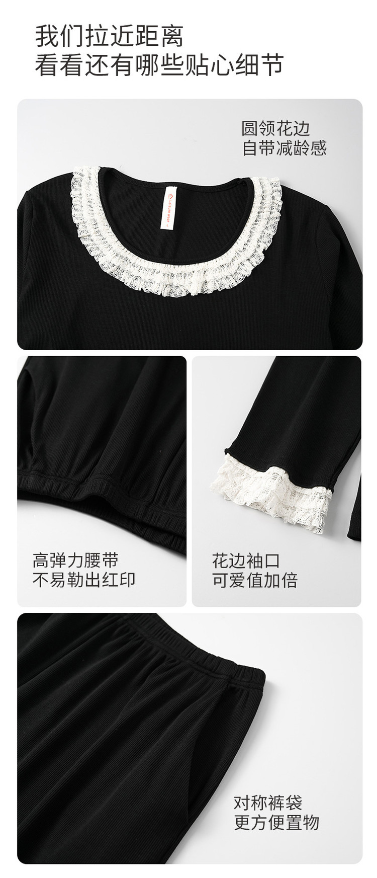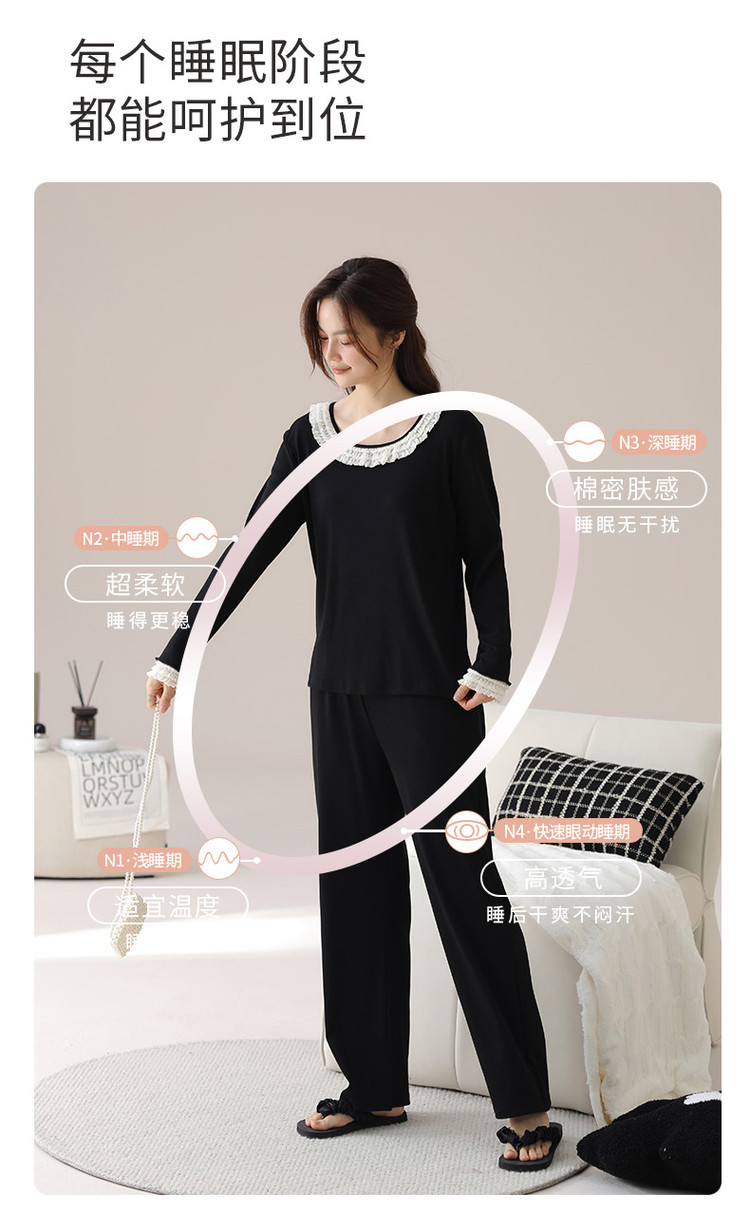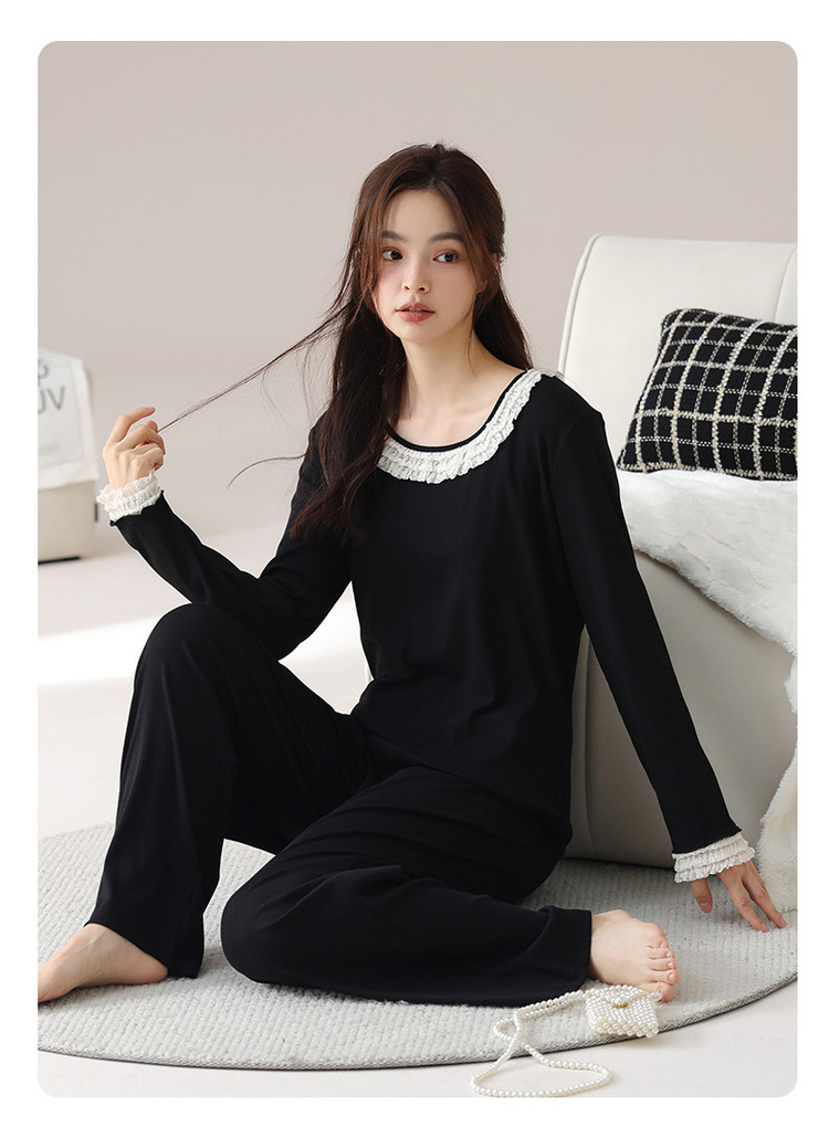 商品名称:【新疆棉】优雅蕾丝圆领套头休闲优质棉舒适家居服秋衣秋裤 421771