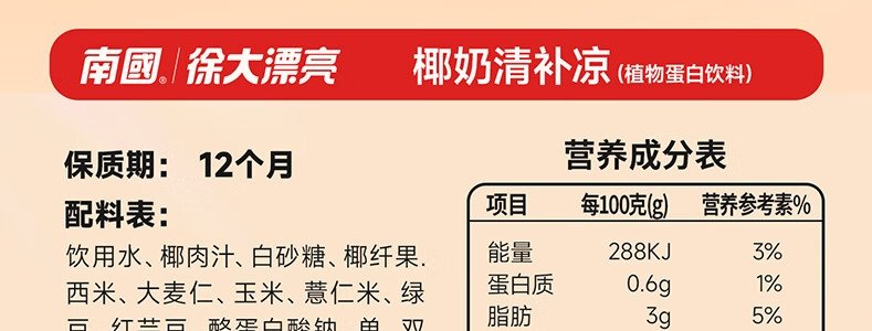 商品名称:南国 【年货款】椰奶清补凉 (红罐身 礼盒款)280g*12罐