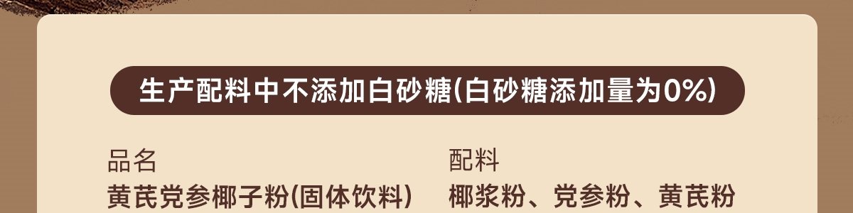 商品名称:南国 黄芪党参椰子粉 120g/袋