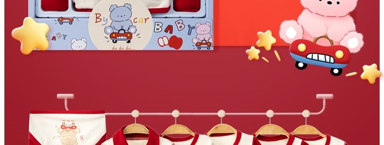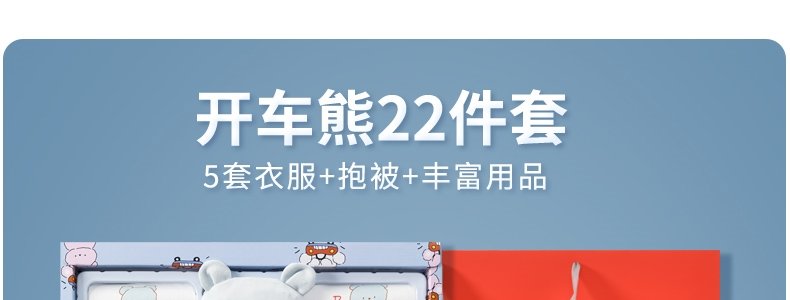 商品名称:班杰威尔 新生儿礼盒婴儿衣服用品套装 66cm 四季开车熊A红