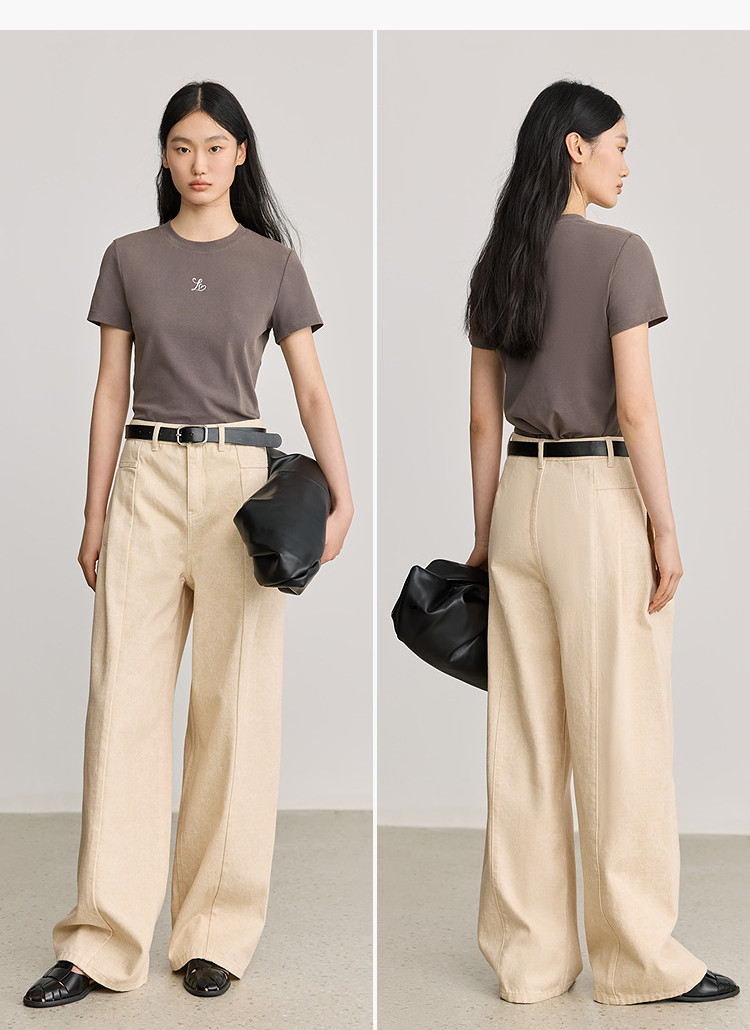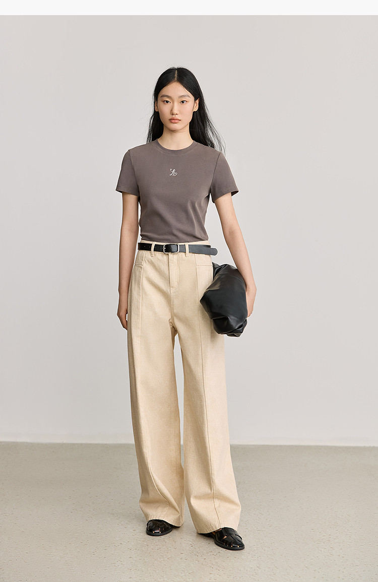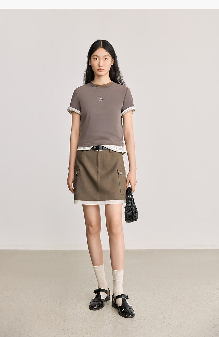 商品名称:【2025春季】简约基础百搭通勤修身圆领咖啡色短袖T恤女短上衣 707419