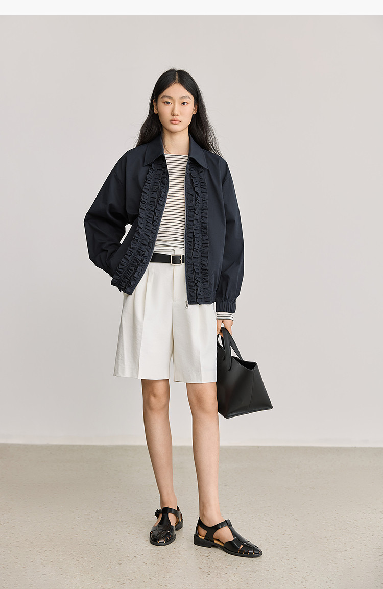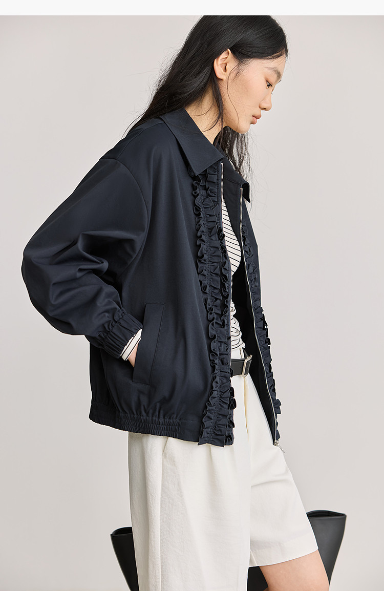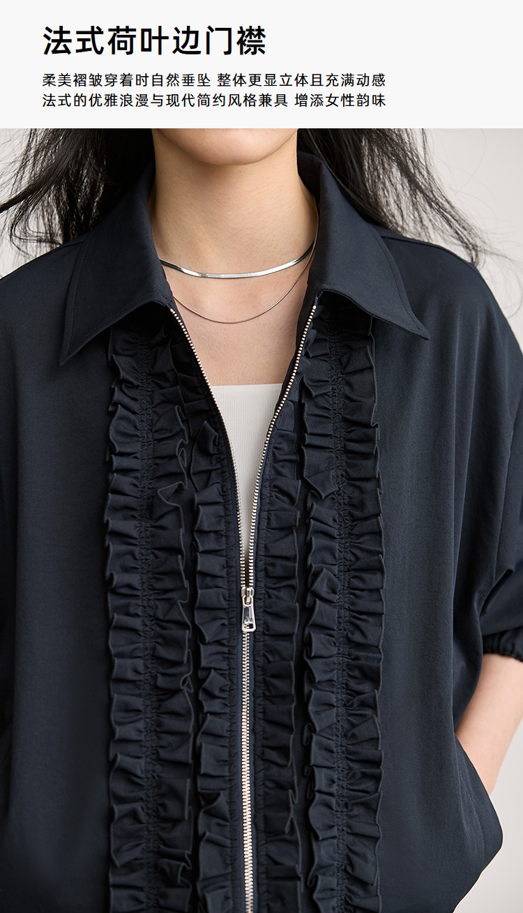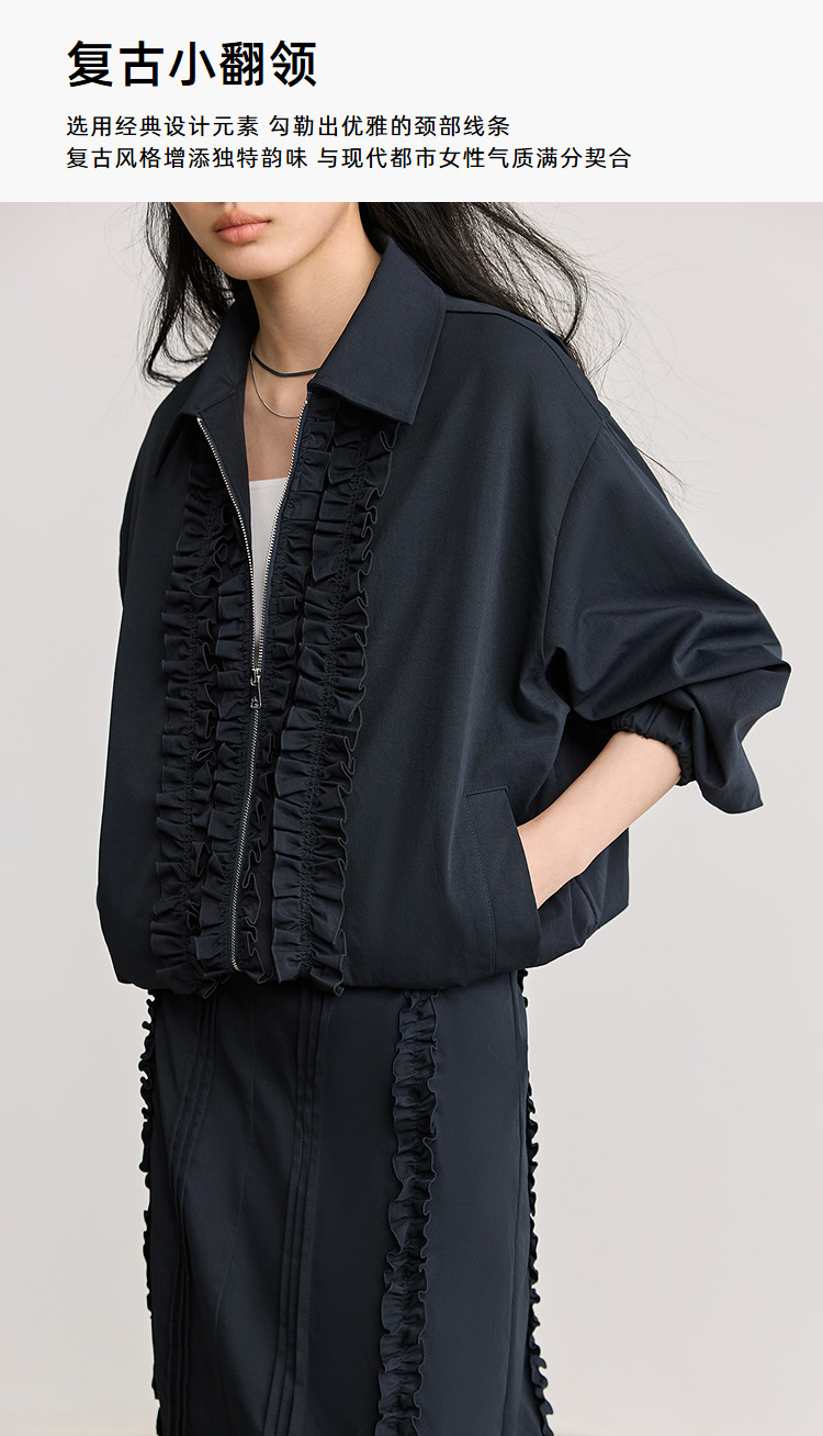 【2025春季】法式重工荷叶边宽松休闲易打理百搭通勤夹克外套女 723803