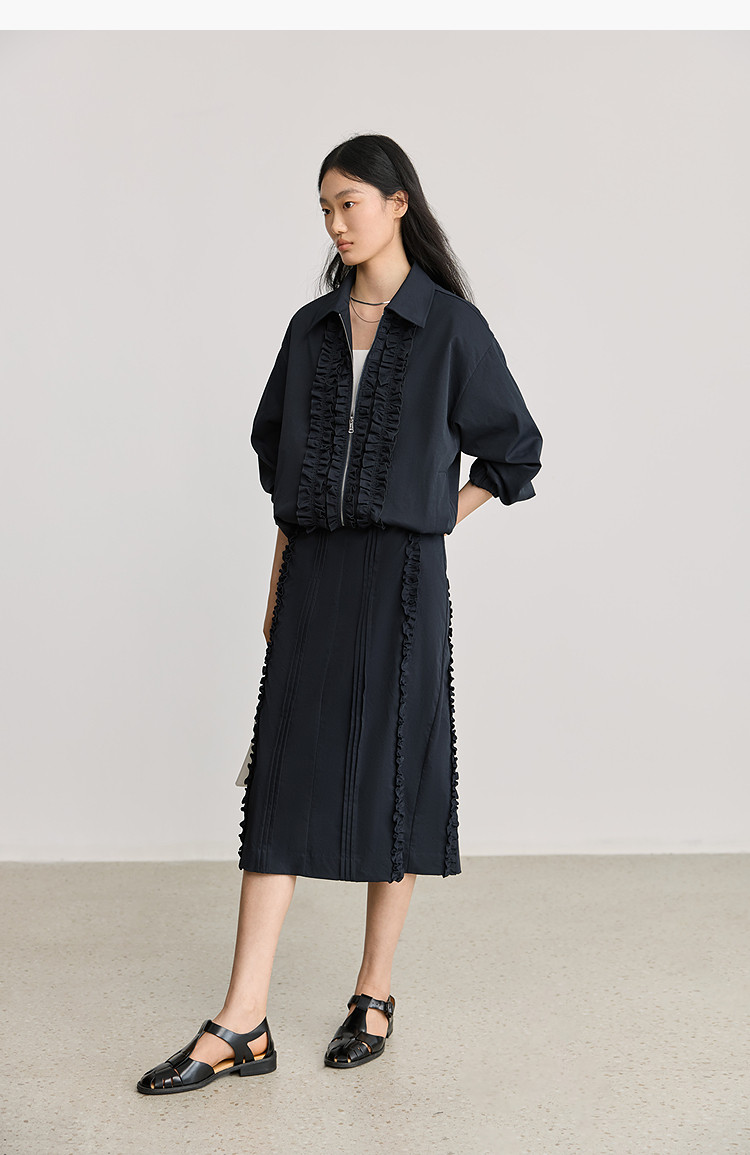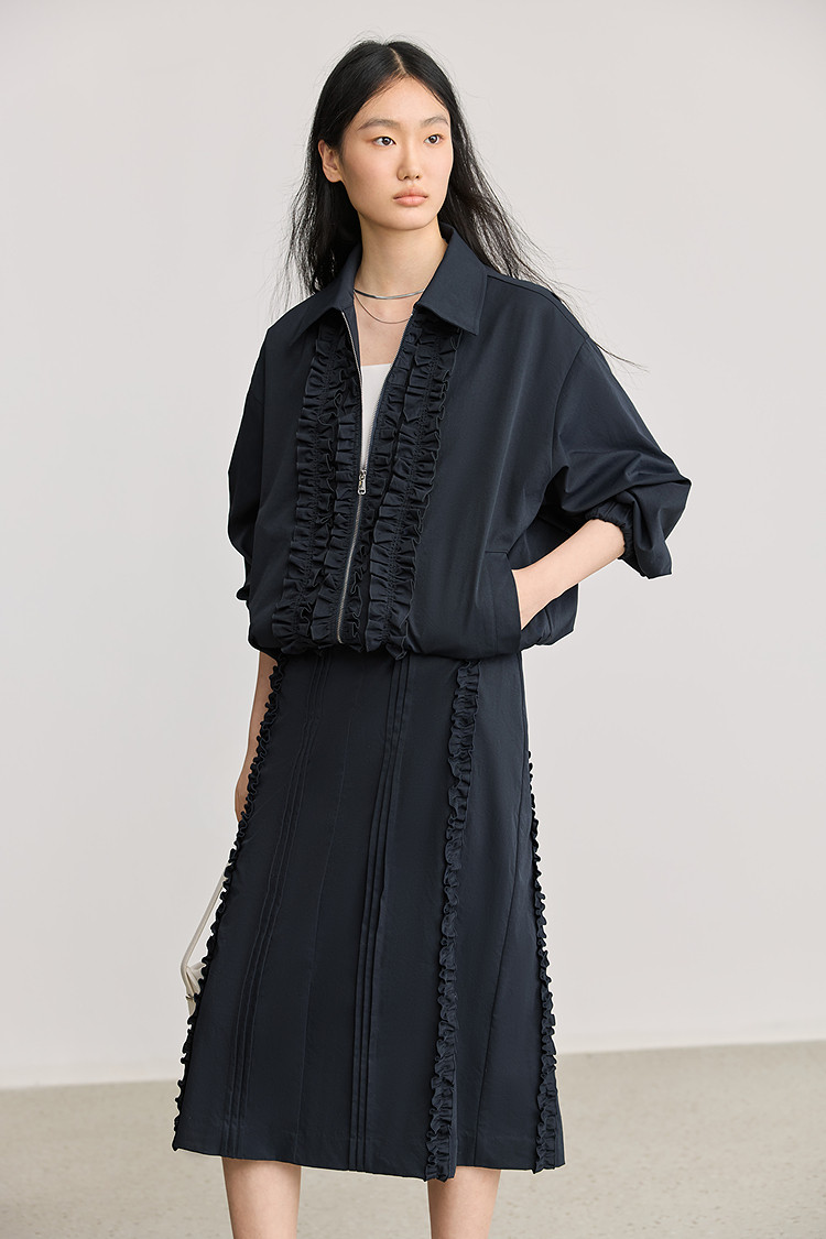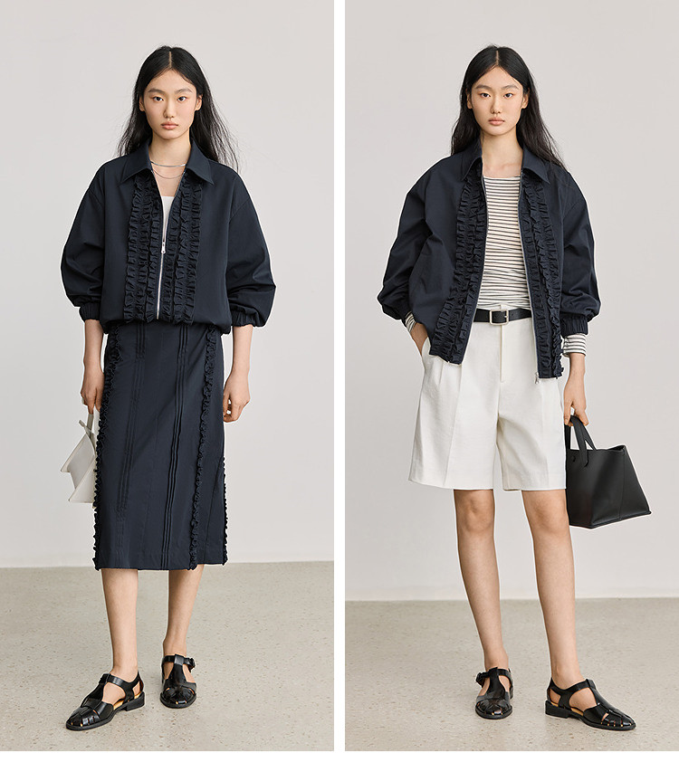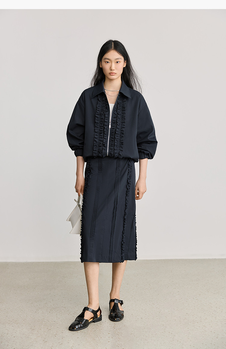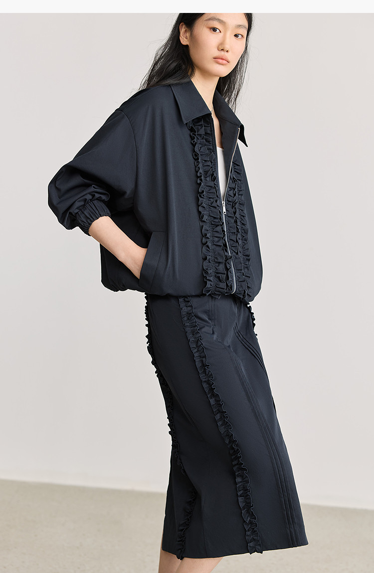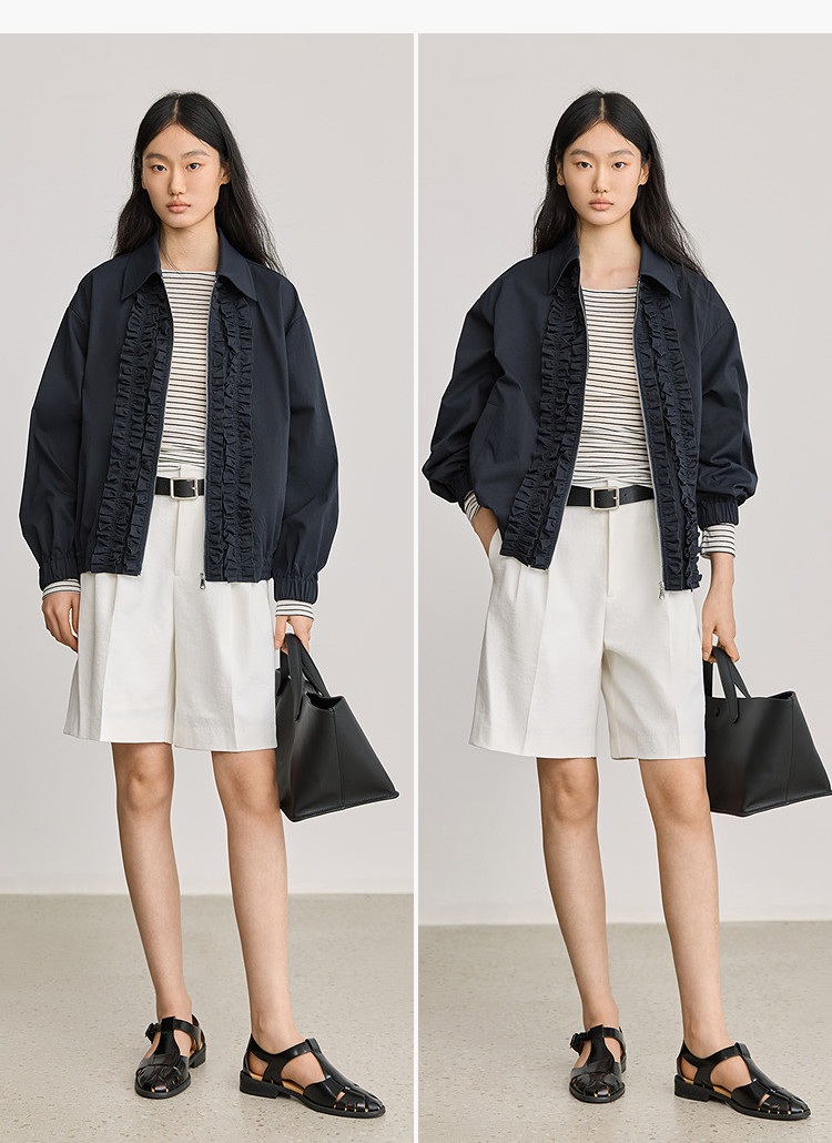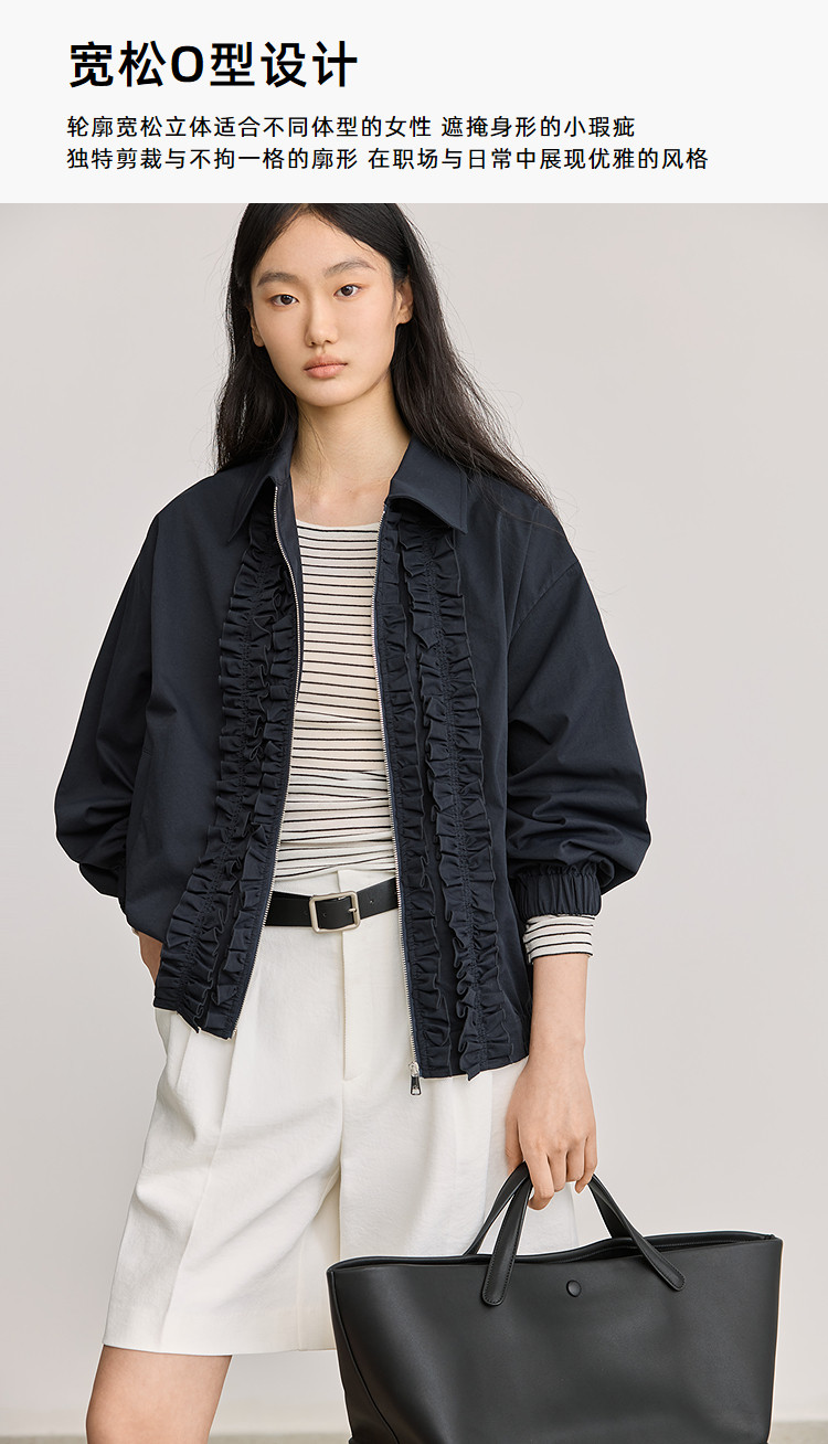 商品名称:【2025春季】法式重工荷叶边宽松休闲易打理百搭通勤夹克外套女 723803