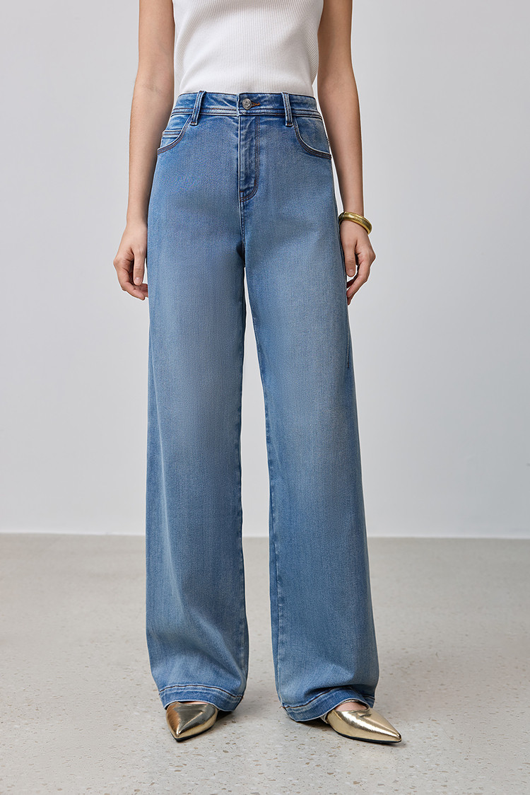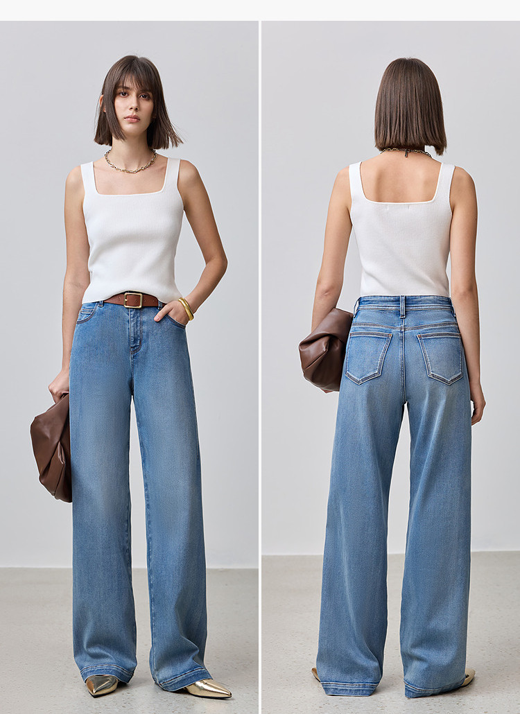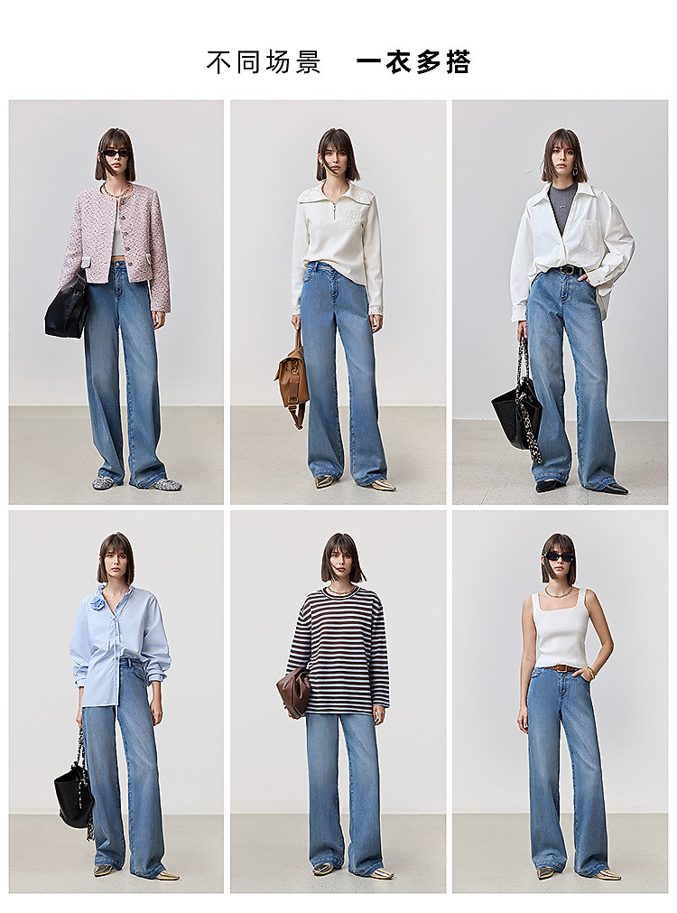 商品名称:【云朵阔腿裤】2025春季复古高腰宽松休闲显瘦百搭直筒裤牛仔裤女 212507