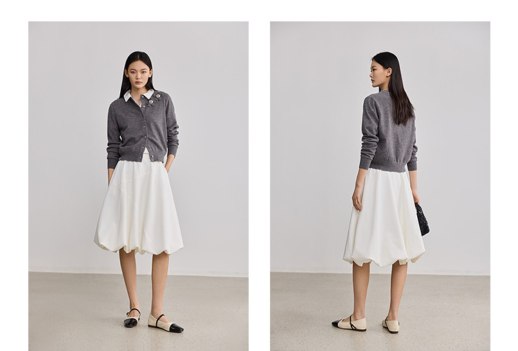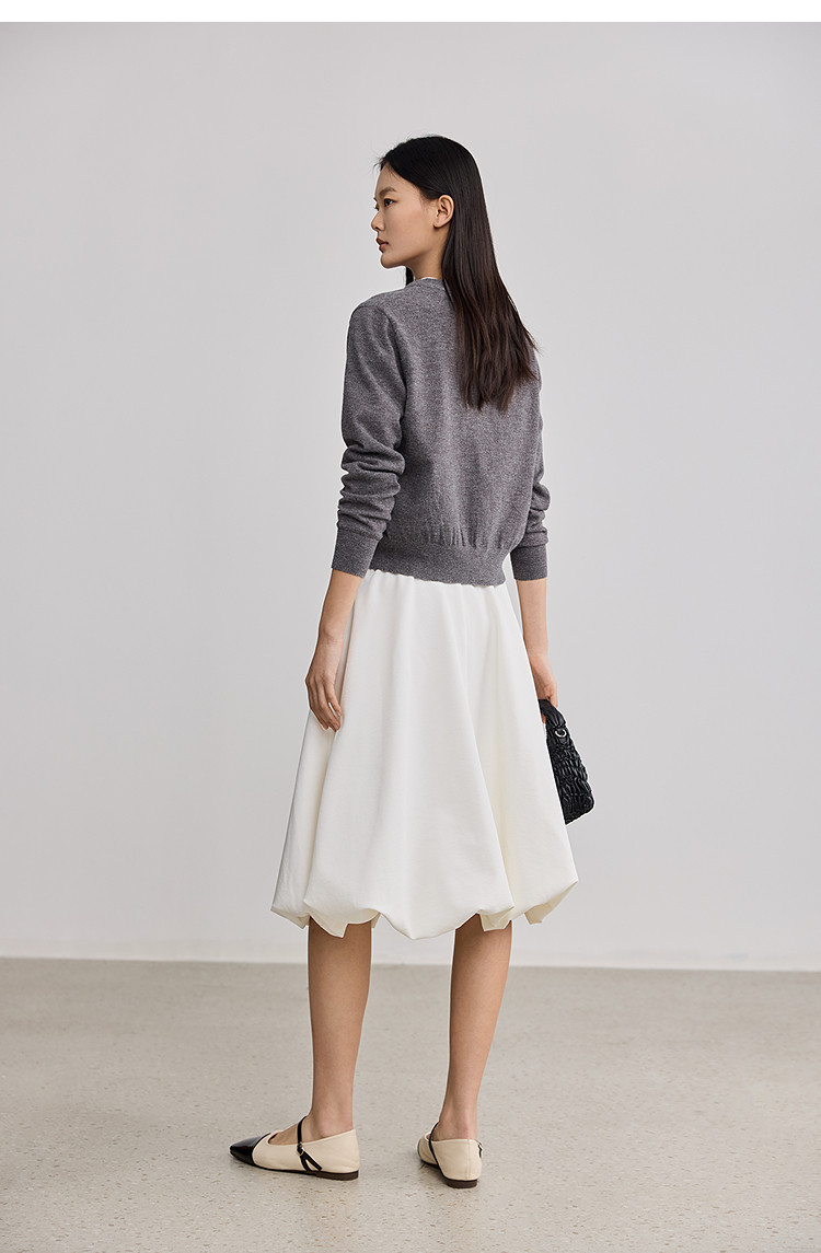 【假开衫】纯色翻领含羊毛长袖针织打底衫毛衣套衫 963859