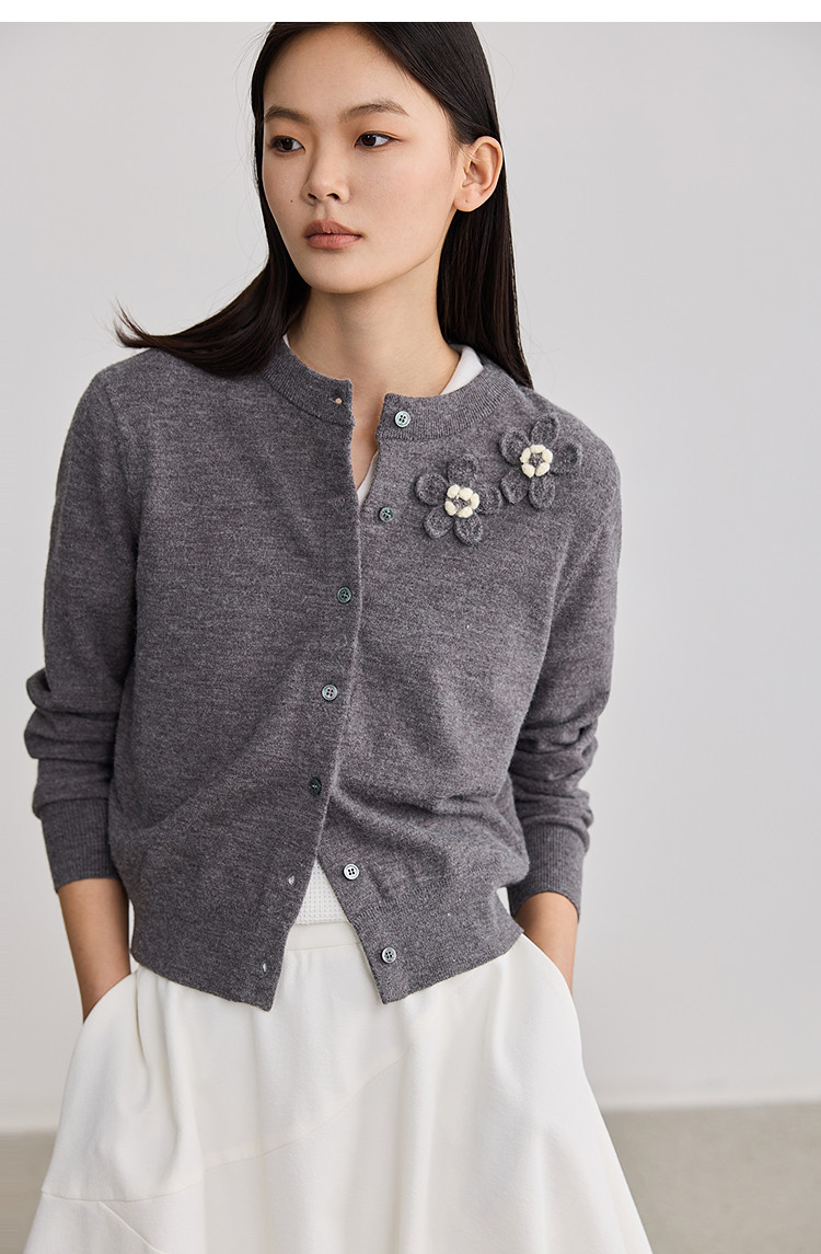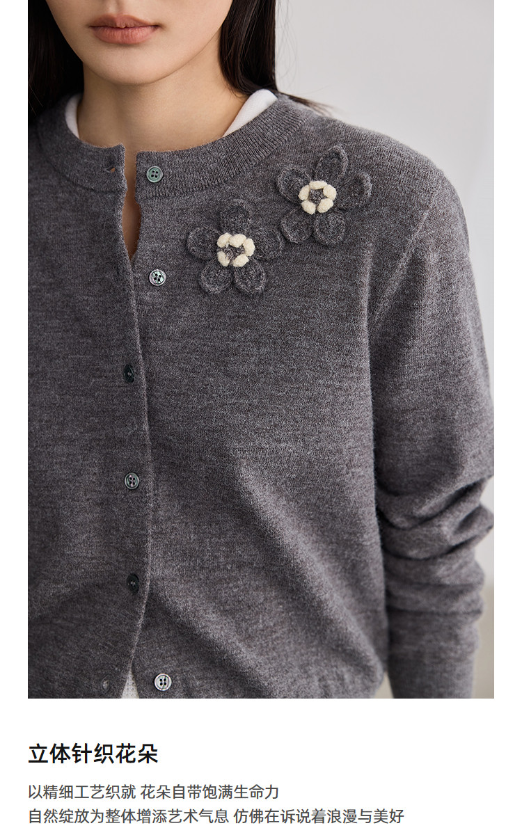 商品名称:【智性开衫】2025春季法式老钱风花朵休闲百搭圆领针织开衫外套女 819355