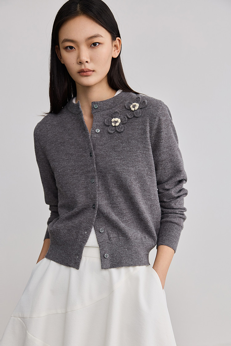 【智性开衫】2025春季法式老钱风花朵休闲百搭圆领针织开衫外套女 819355