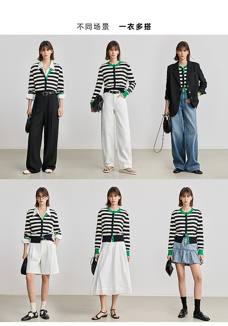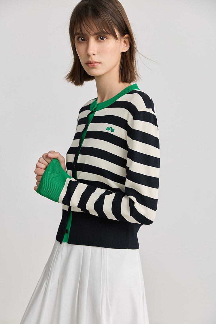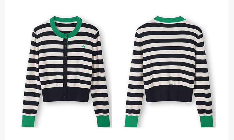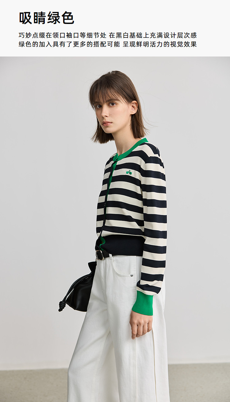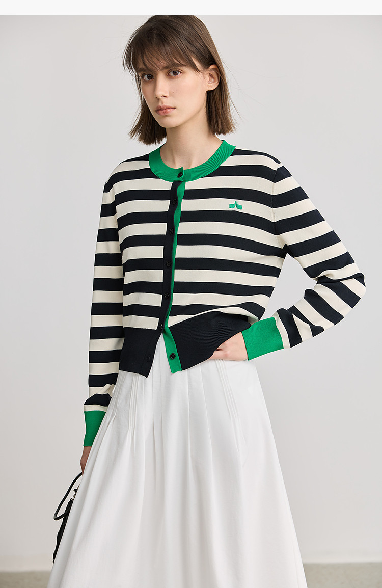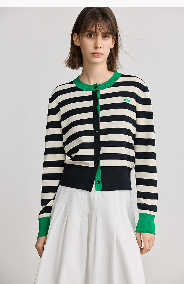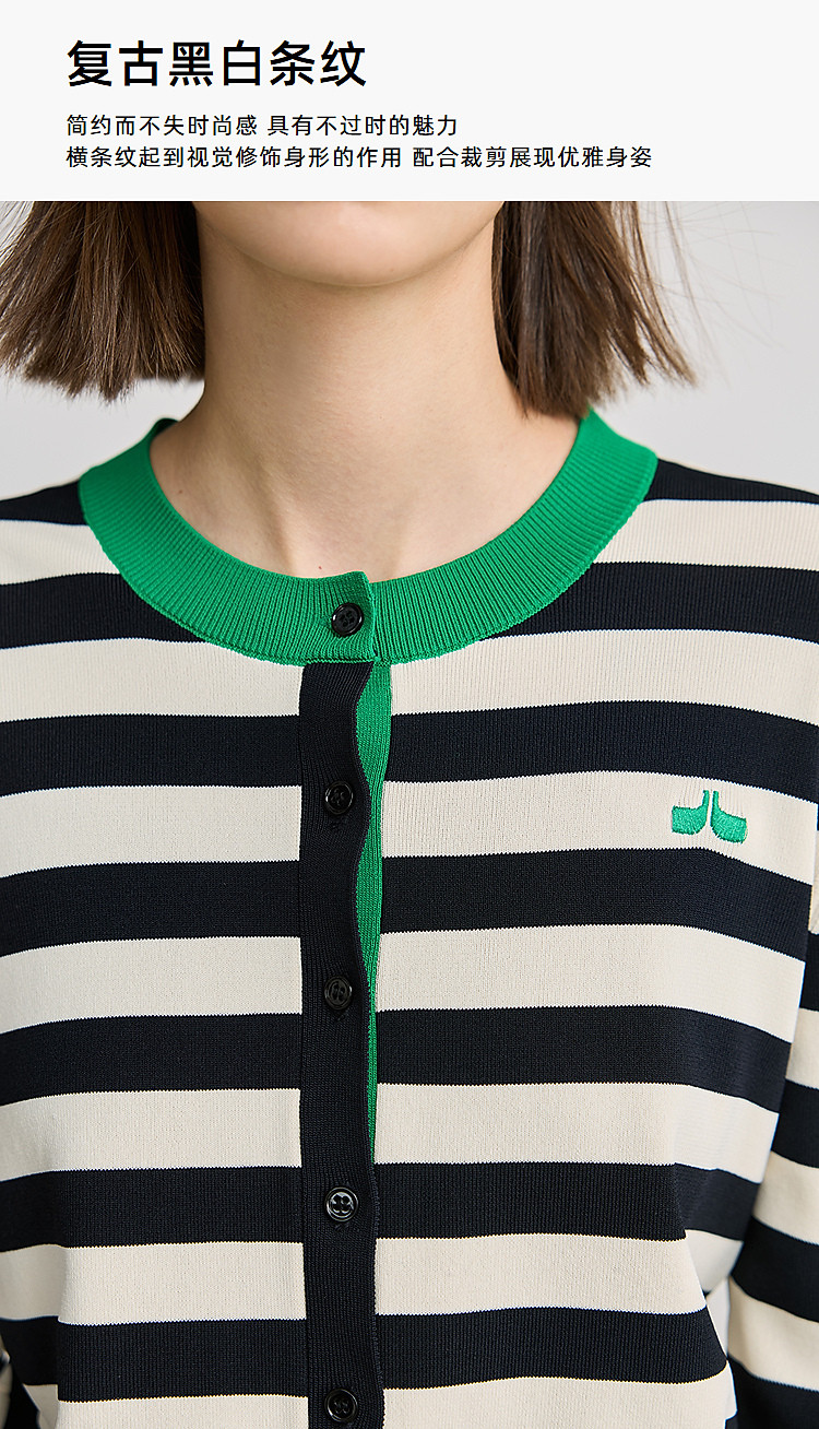 商品名称:【智性开衫】2025春季设计感复古撞色条纹休闲圆领针织衫外套女 526875