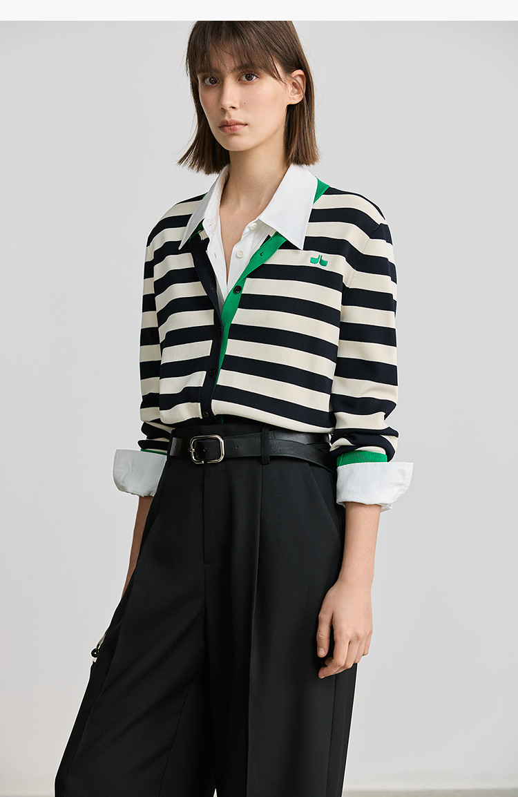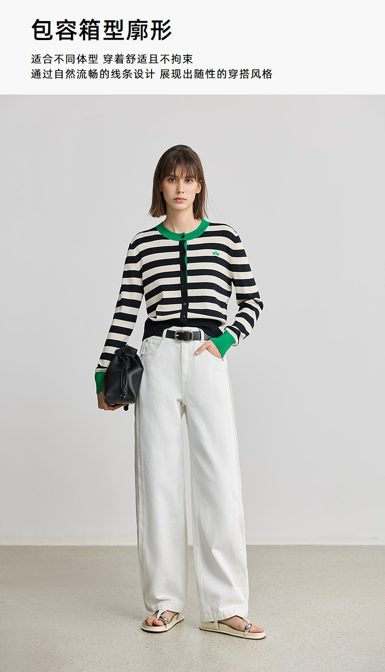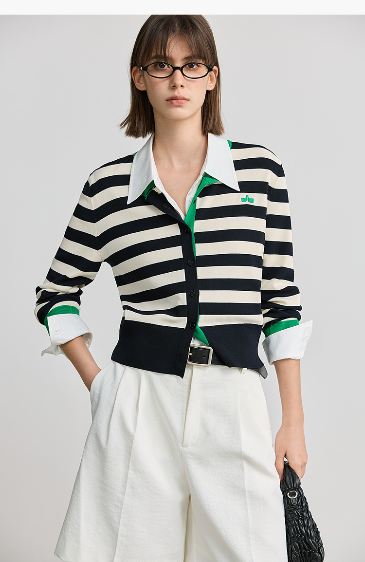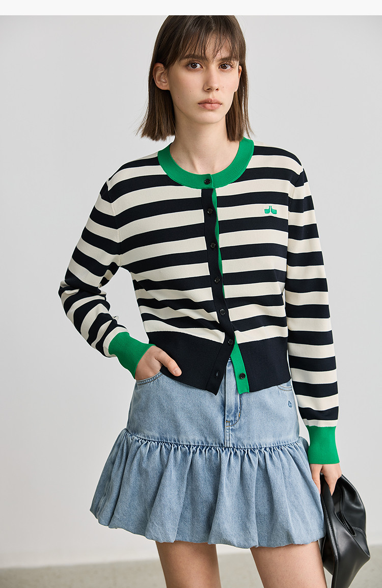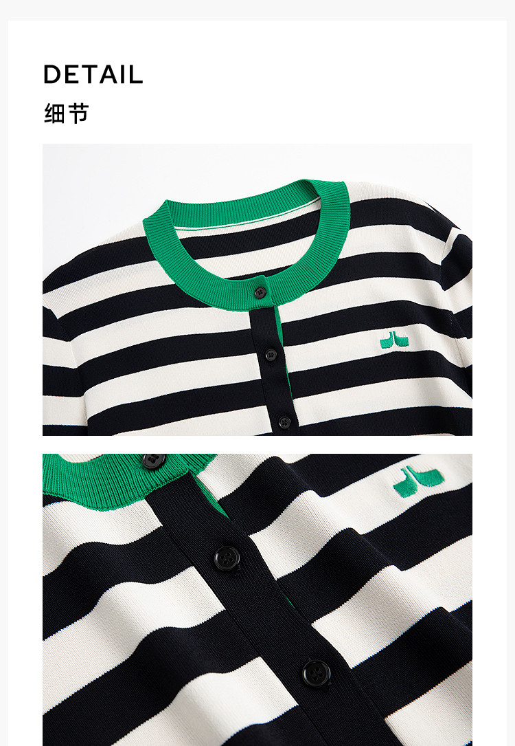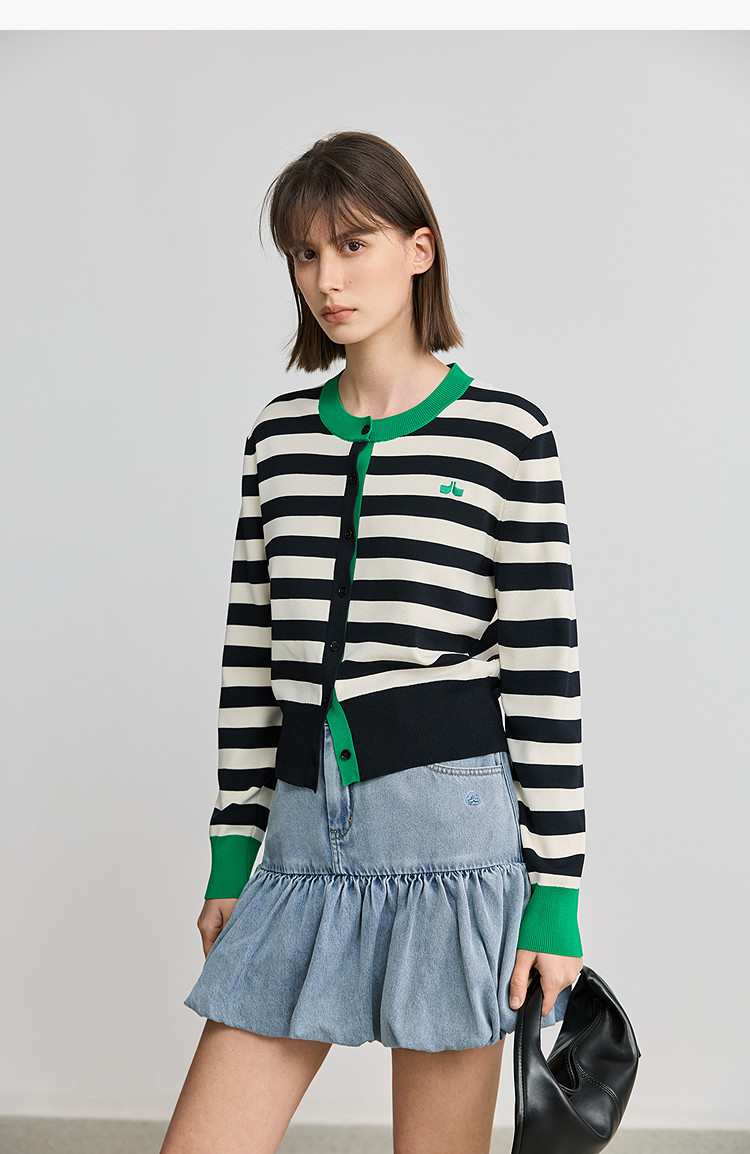 商品名称:【智性开衫】2025春季设计感复古撞色条纹休闲圆领针织衫外套女 526875