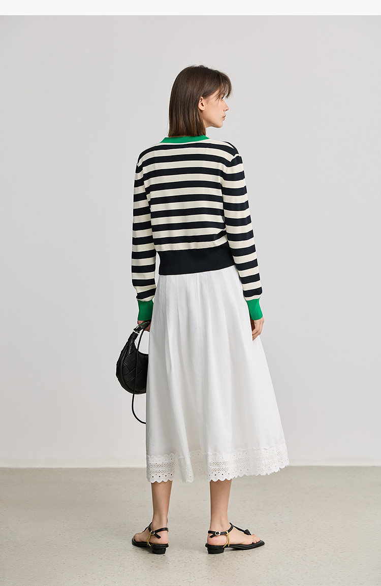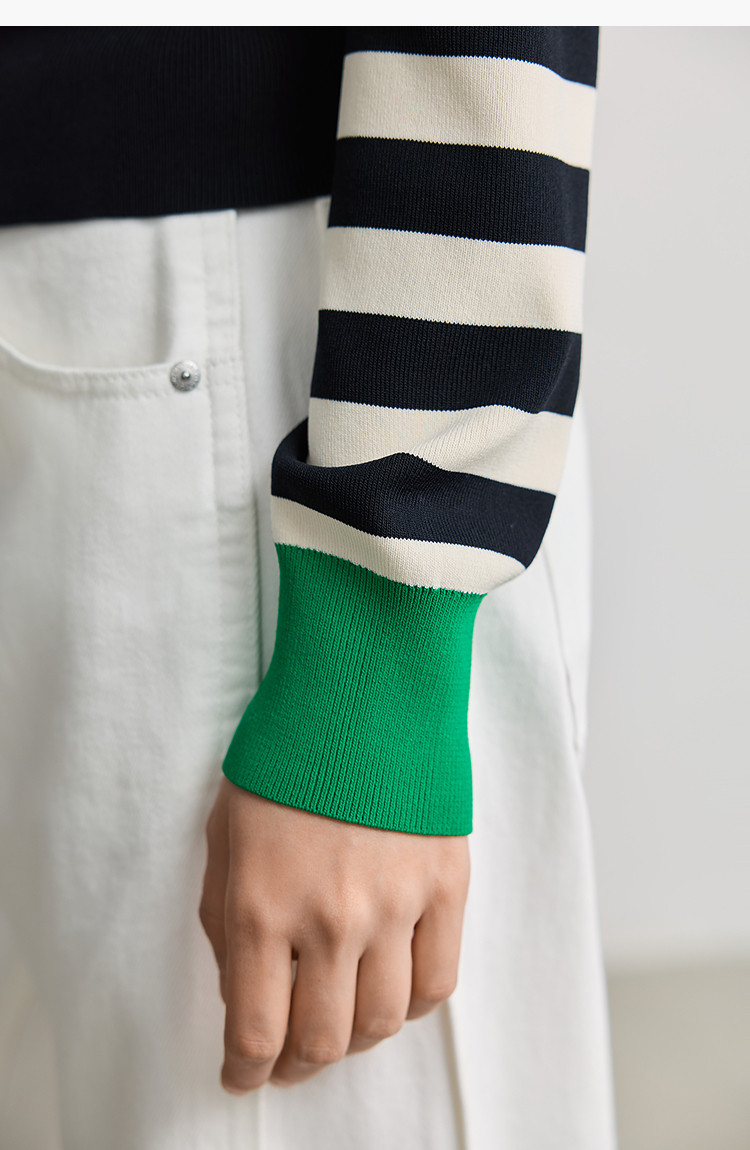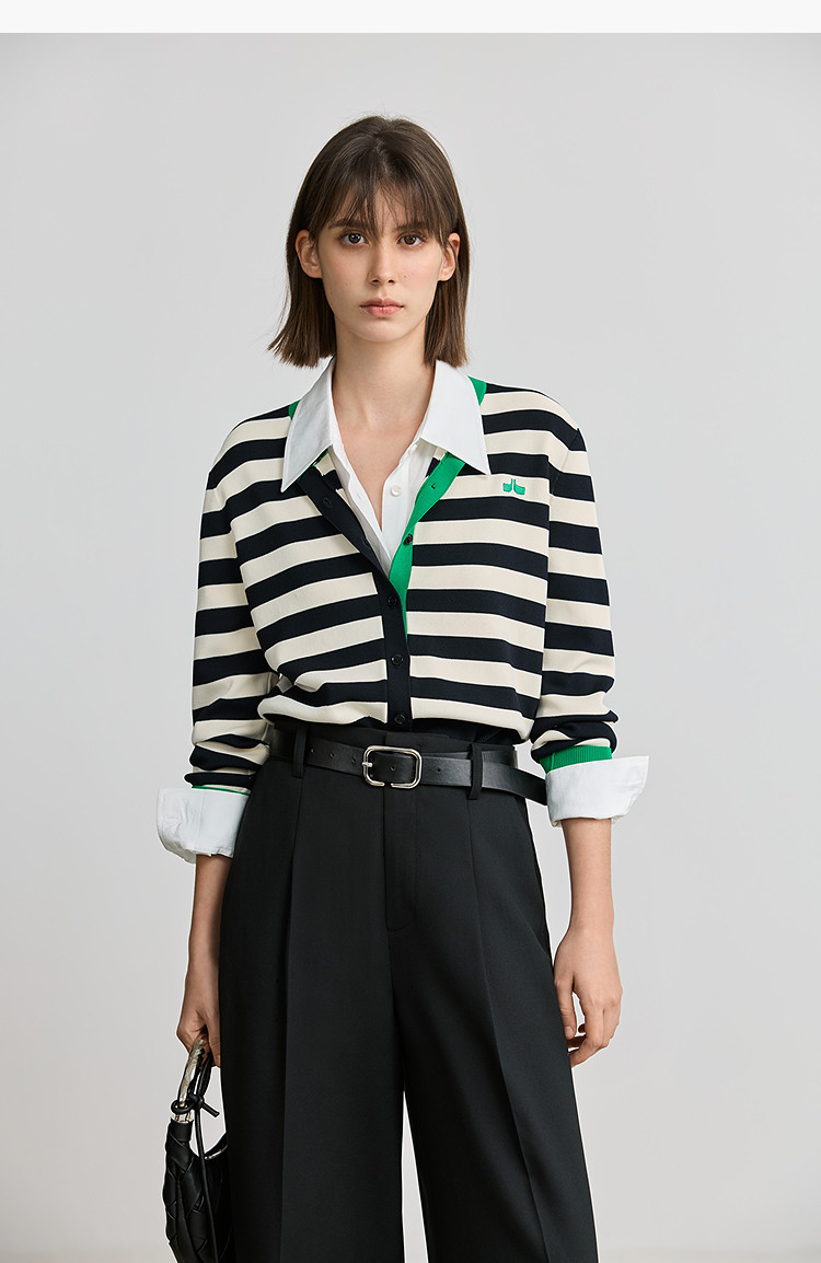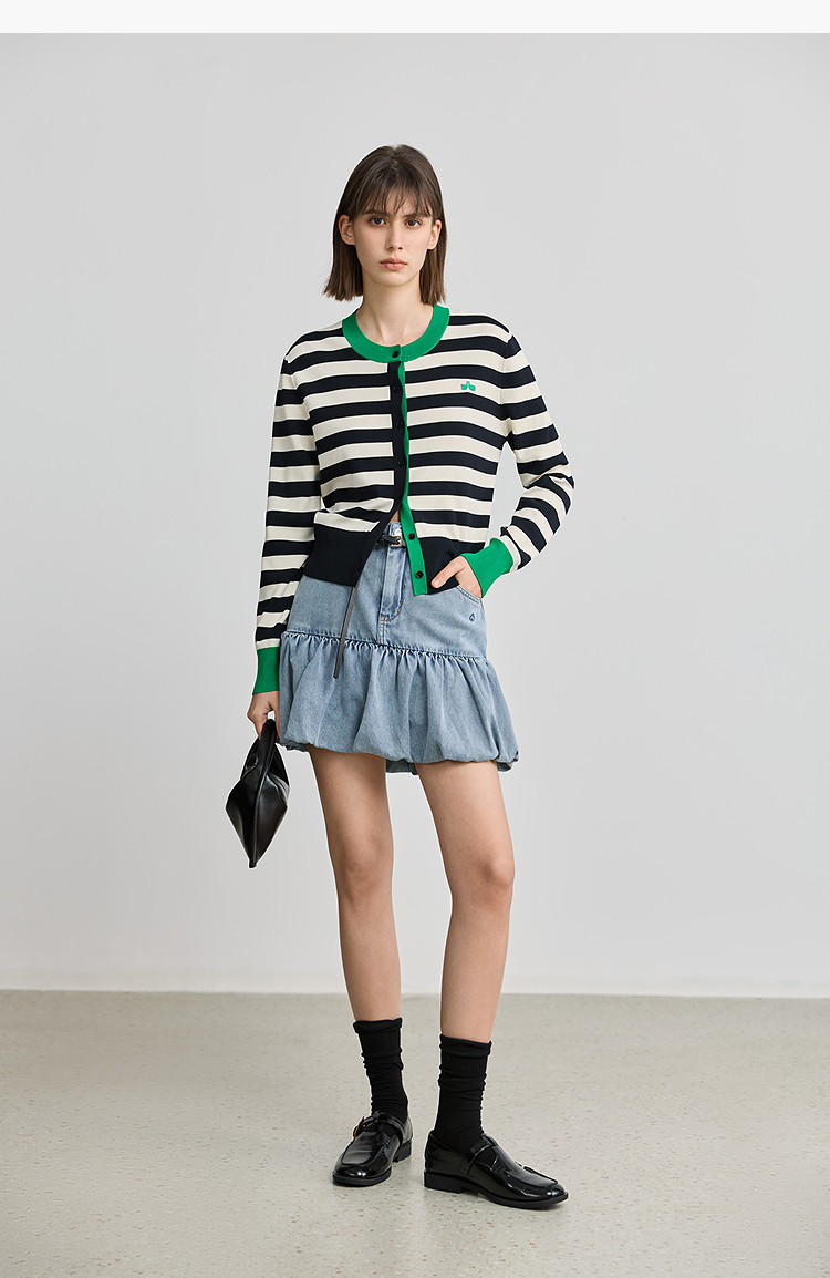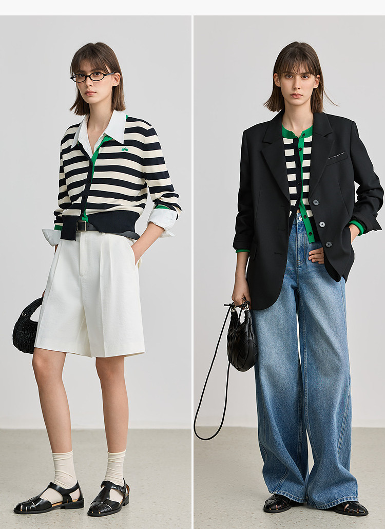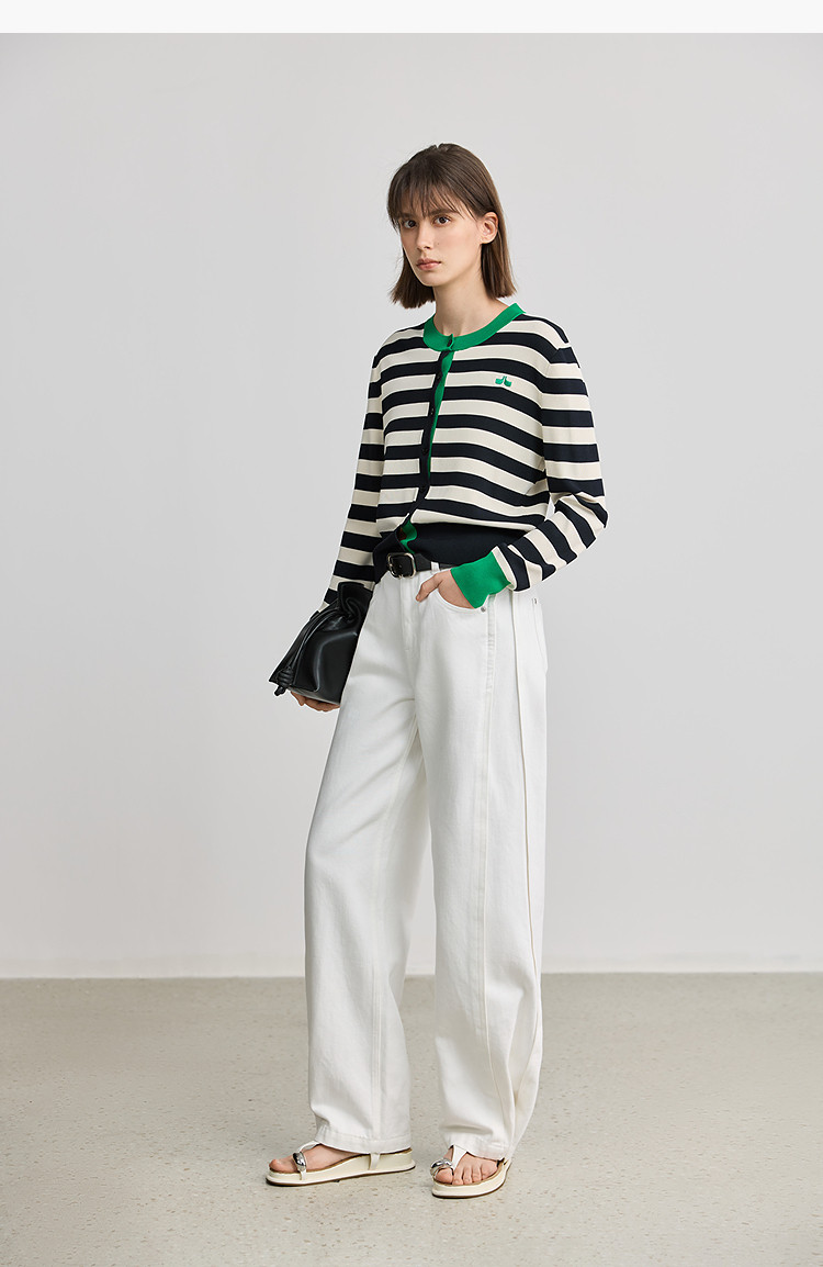 商品名称:【智性开衫】2025春季设计感复古撞色条纹休闲圆领针织衫外套女 526875