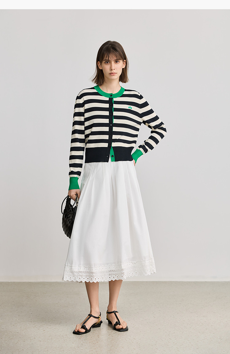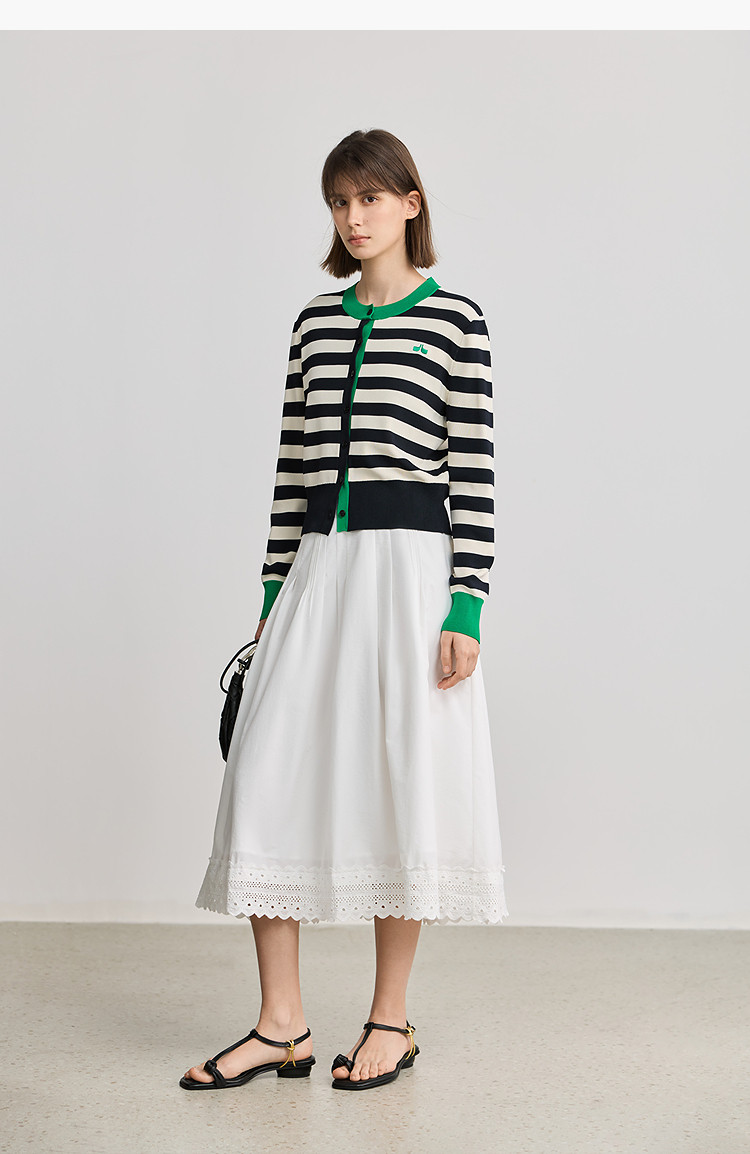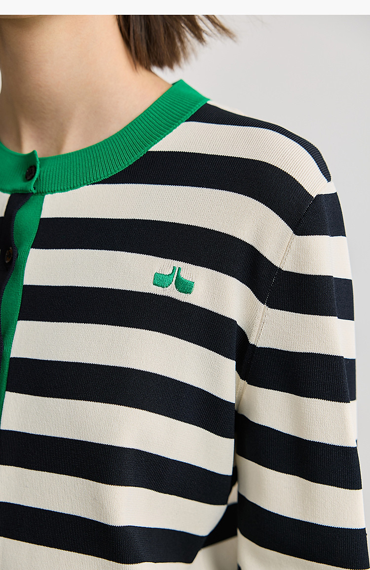 【智性开衫】2025春季设计感复古撞色条纹休闲圆领针织衫外套女 526875