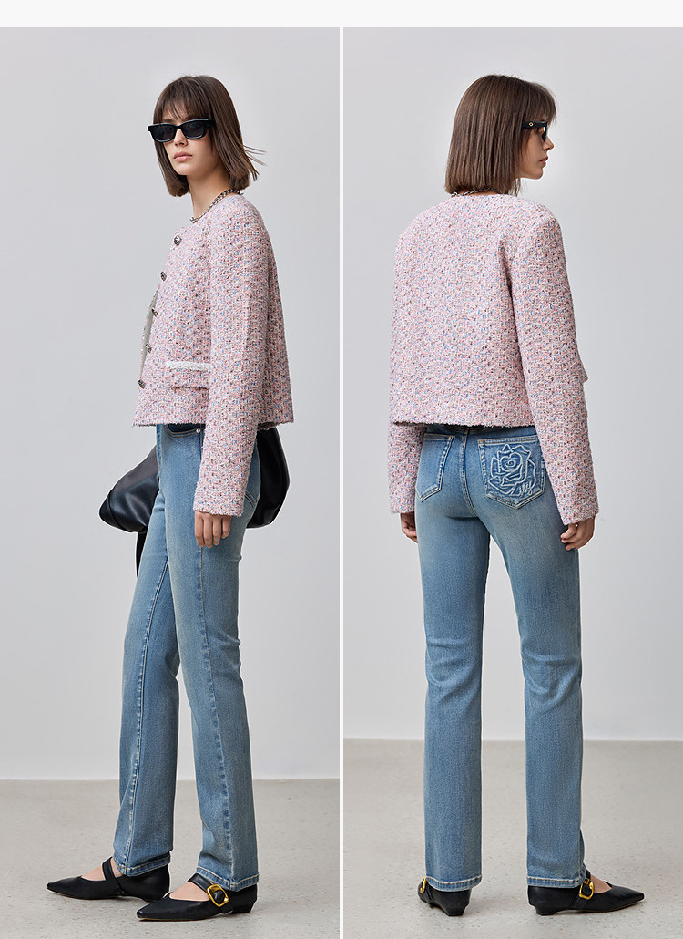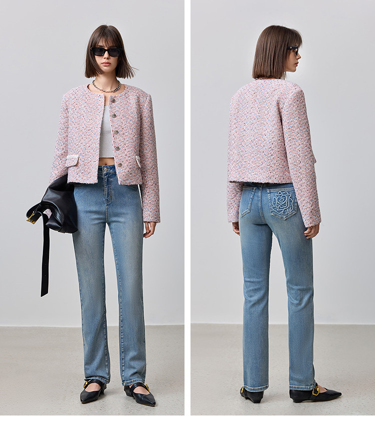 彩色刺绣茧型老爹设计感直筒裤2025夏季潮流休闲女式牛仔裤 041053