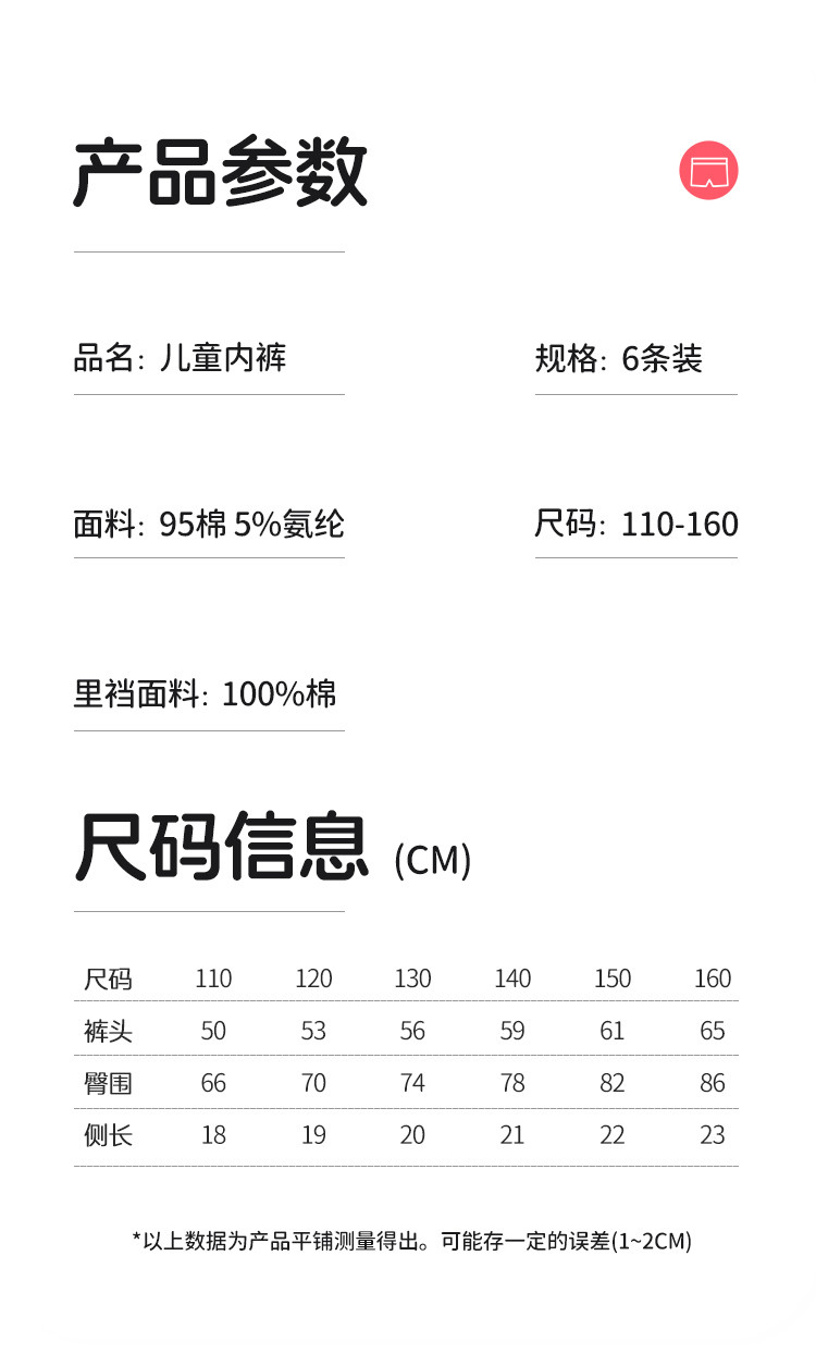 商品名称:【7A抑菌纯棉档】6条装儿童内裤女童内裤发育期平角内裤中大童 449803